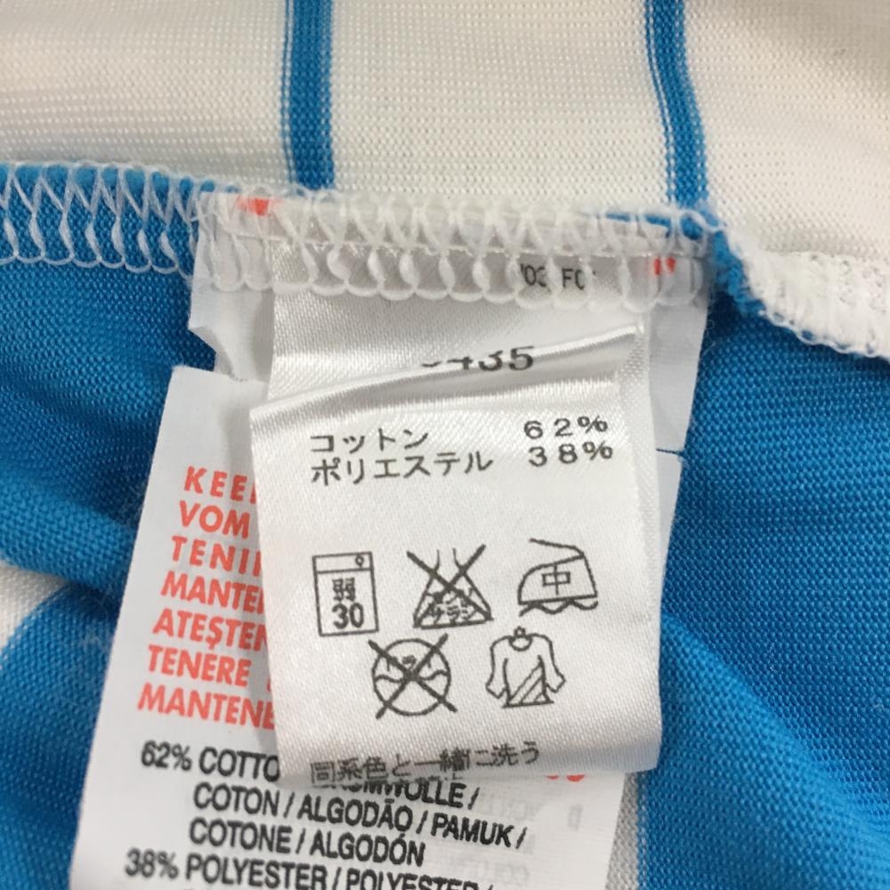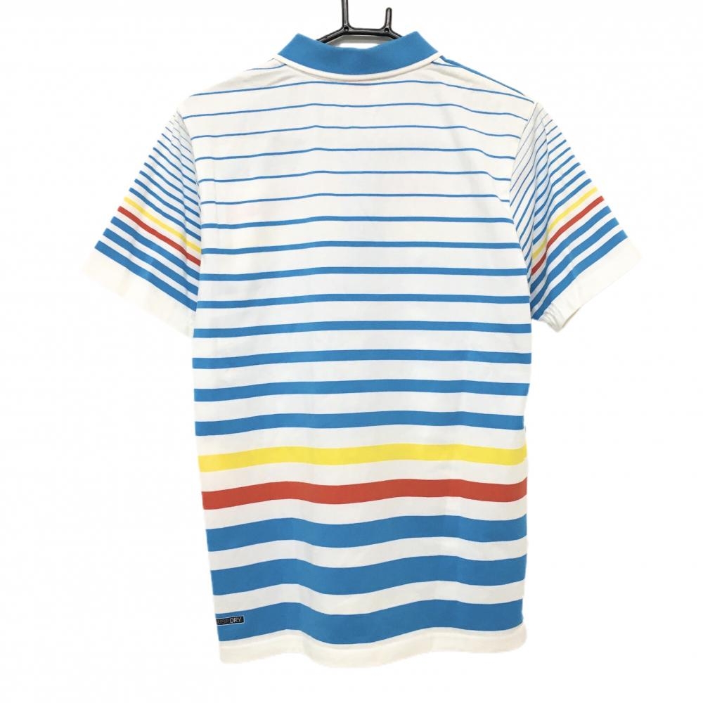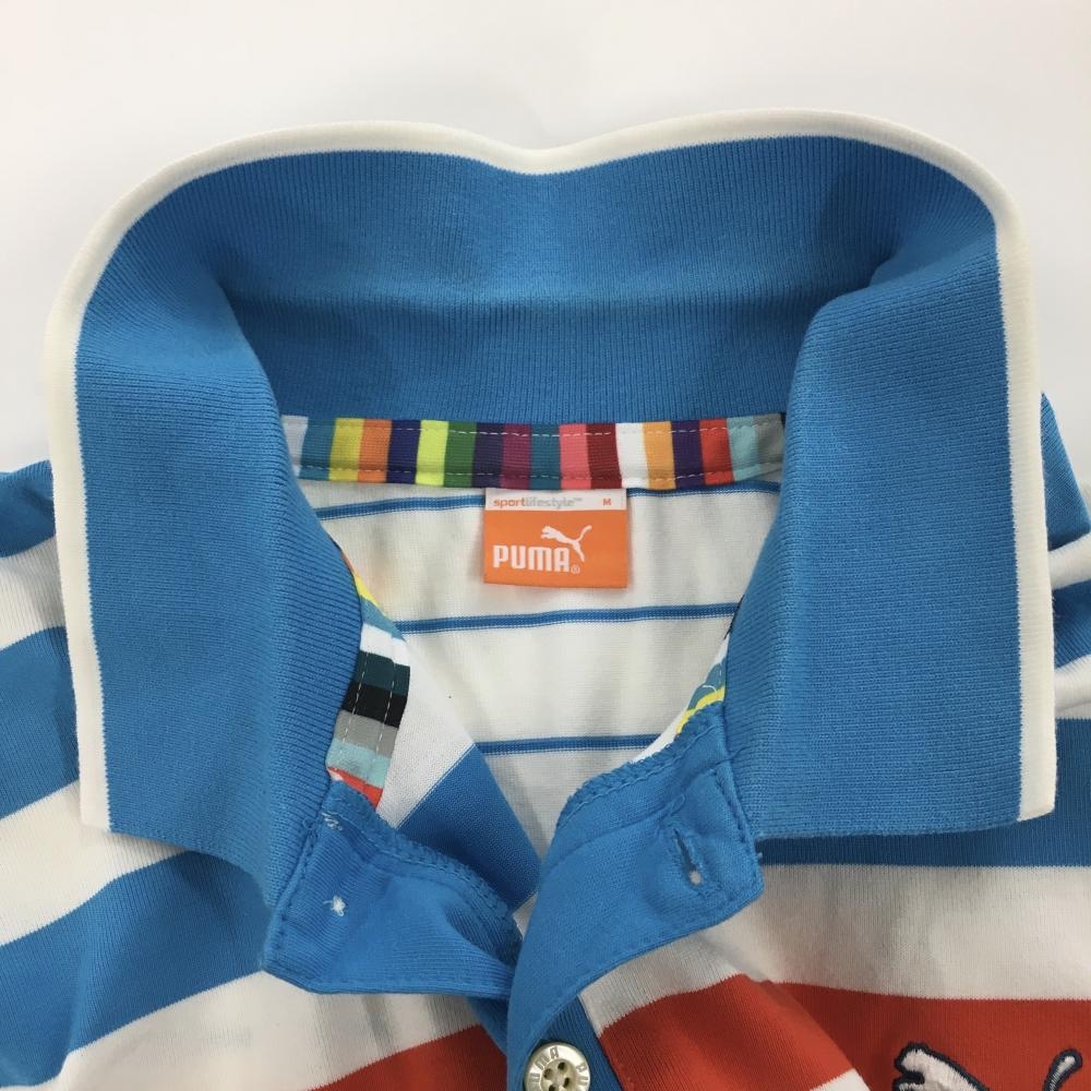 プーマ 半袖ポロシャツ 白×ライトブルー ボーダー ロゴ刺しゅう メンズ M ゴルフウェア PUMA