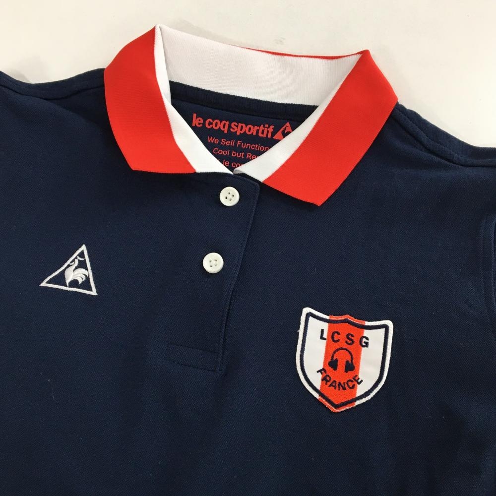 【美品】ルコック 半袖ポロシャツ ネイビー×レッド ロゴ刺しゅう レディース S ゴルフウェア le coq sportif