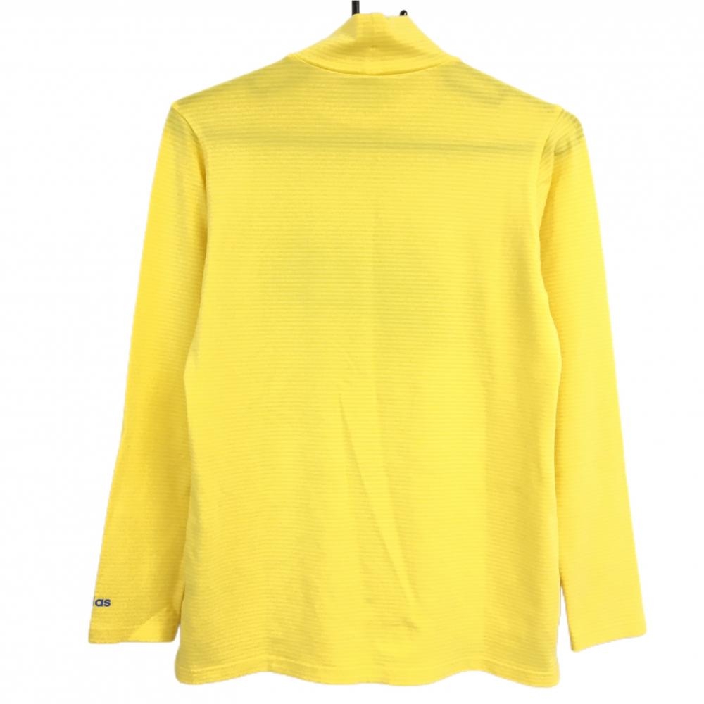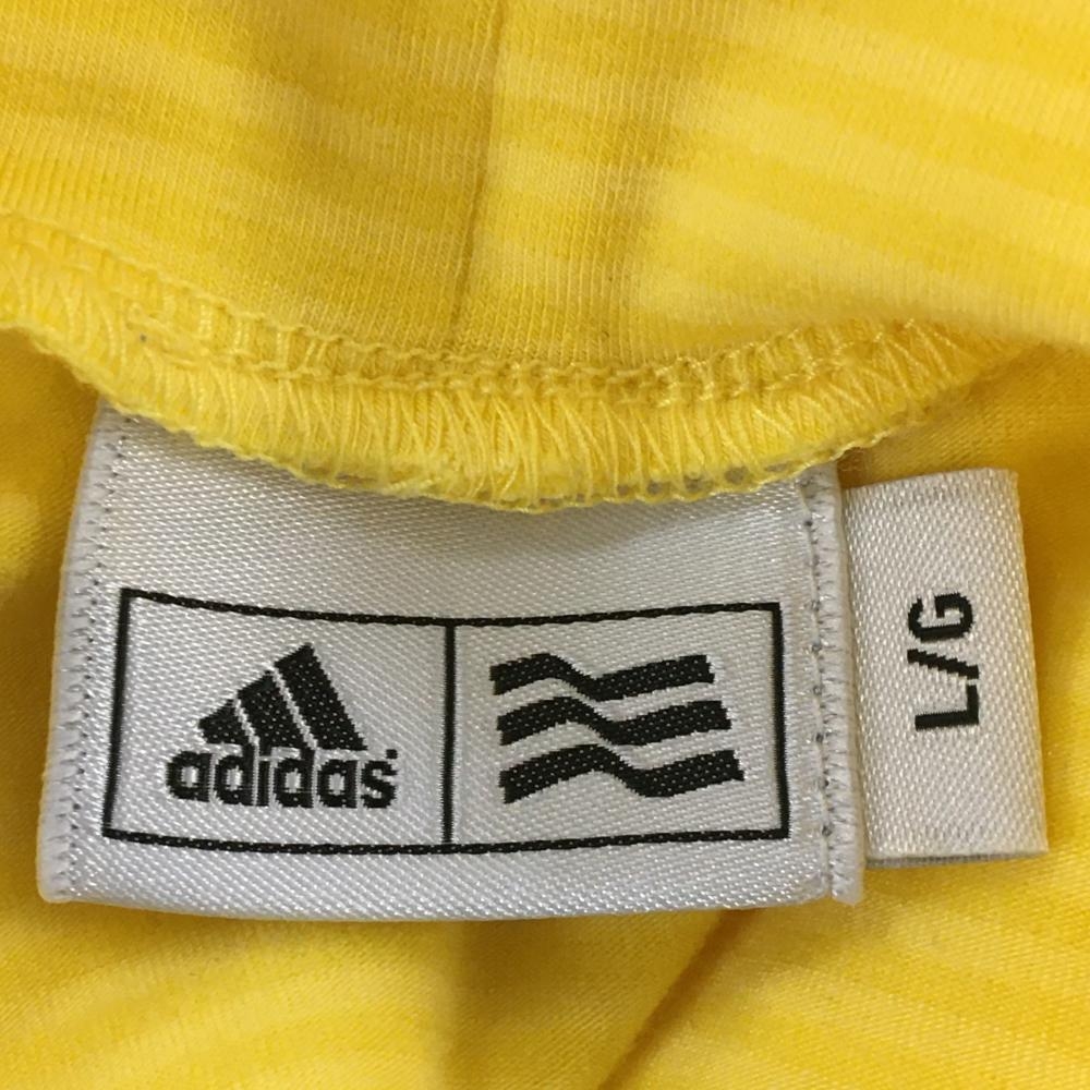 【超美品】アディダス 長袖ハイネックシャツ イエロー ボーダー アクリル混 ロゴプリント レディース L/G ゴルフウェア adidas
