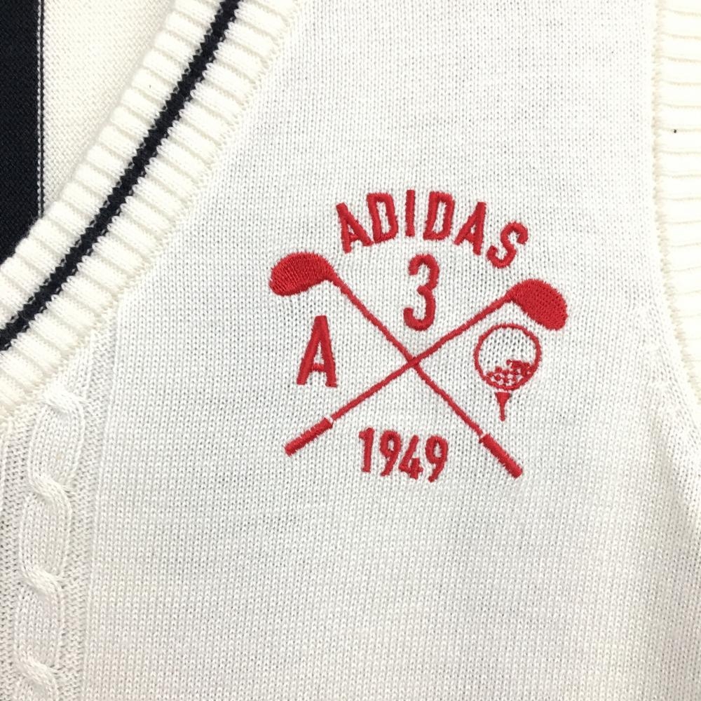【超美品】アディダス ニットベスト 白×ダークネイビー 後ろストライプ 一部ケーブル編み ウール混 レディース L/G ゴルフウェア adidas
