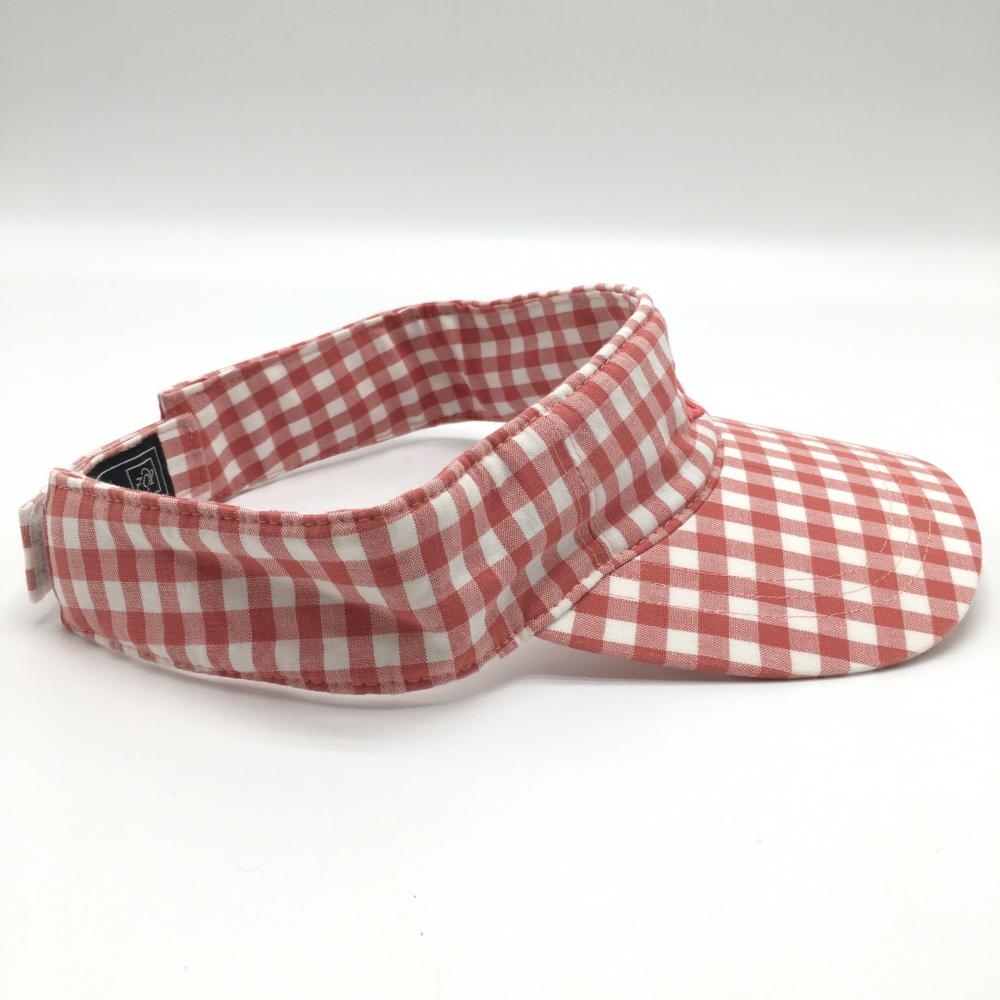 ゾーイ サンバイザー レッド×白 チェック柄 立体ロゴ刺しゅう ゴルフウェア ZOY