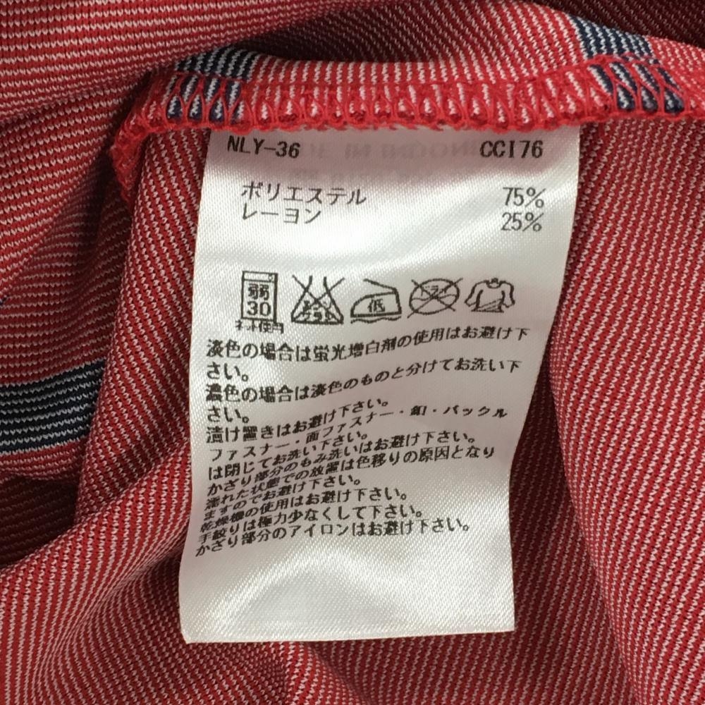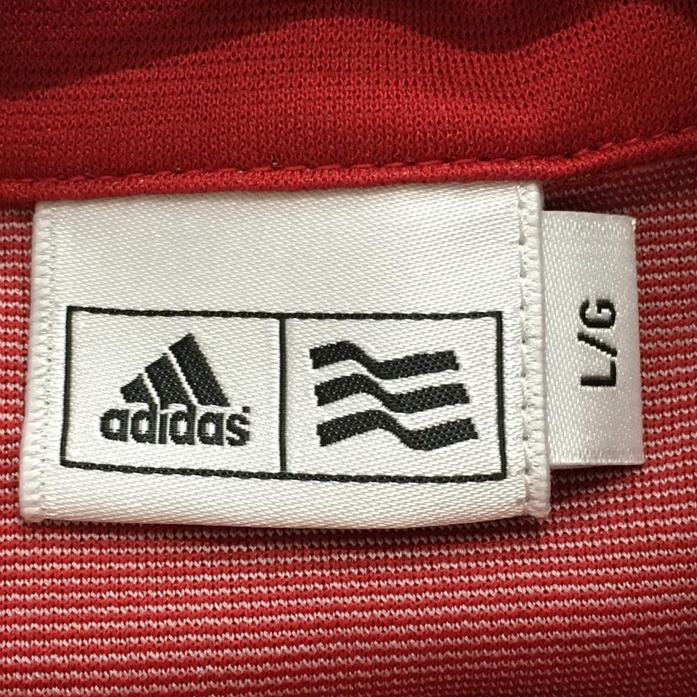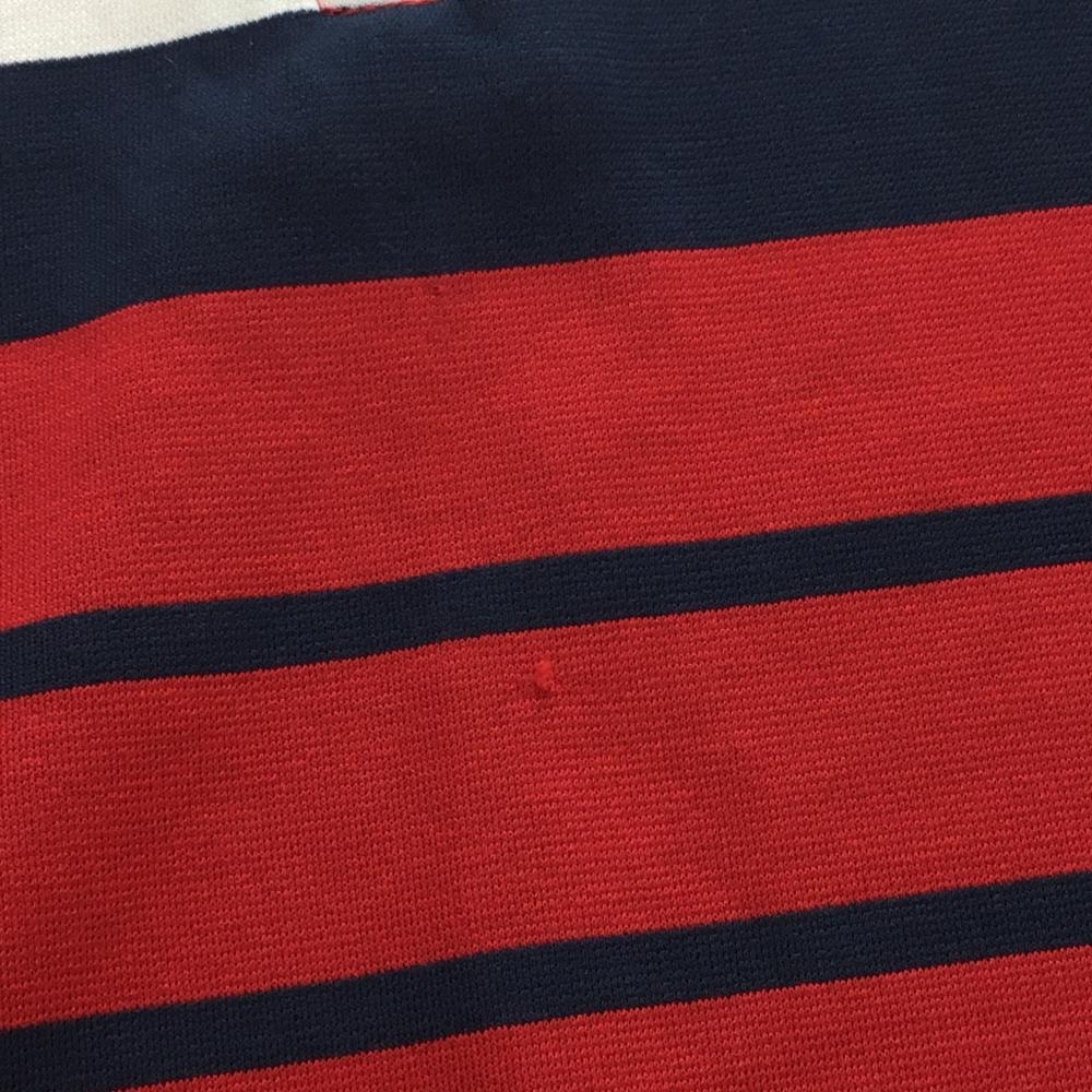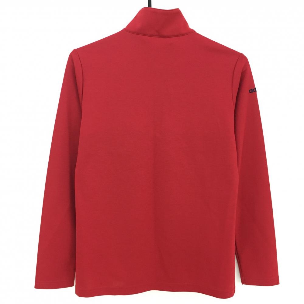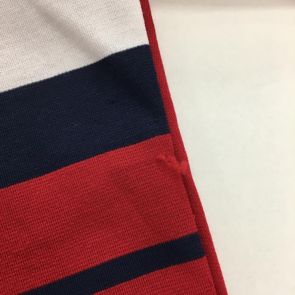 アディダス 長袖ハイネックシャツ レッド×ネイビー 前面ボーダー ハーフジップ レディース L/G ゴルフウェア adidas