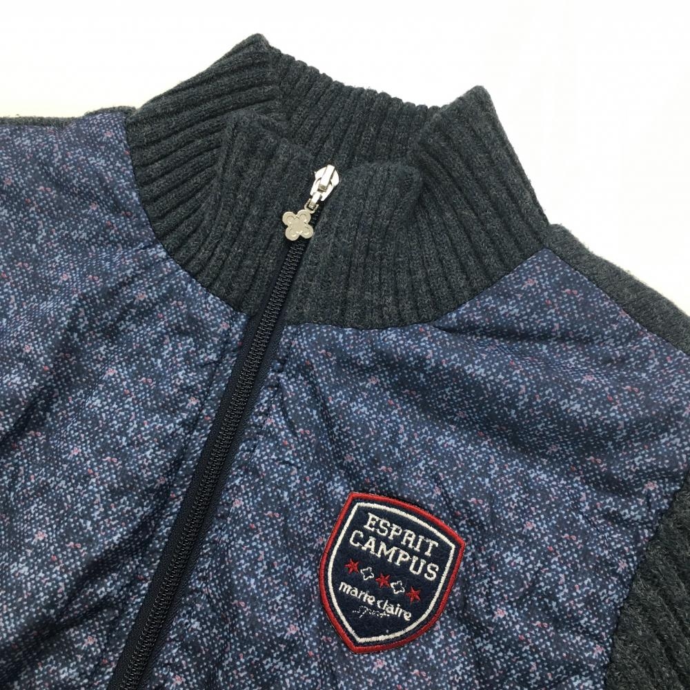 【美品】マリクレールスポール 中綿ジャケット ネイビー 身頃中綿 袖ニット 異素材切替 レディース M ゴルフウェア marie claire