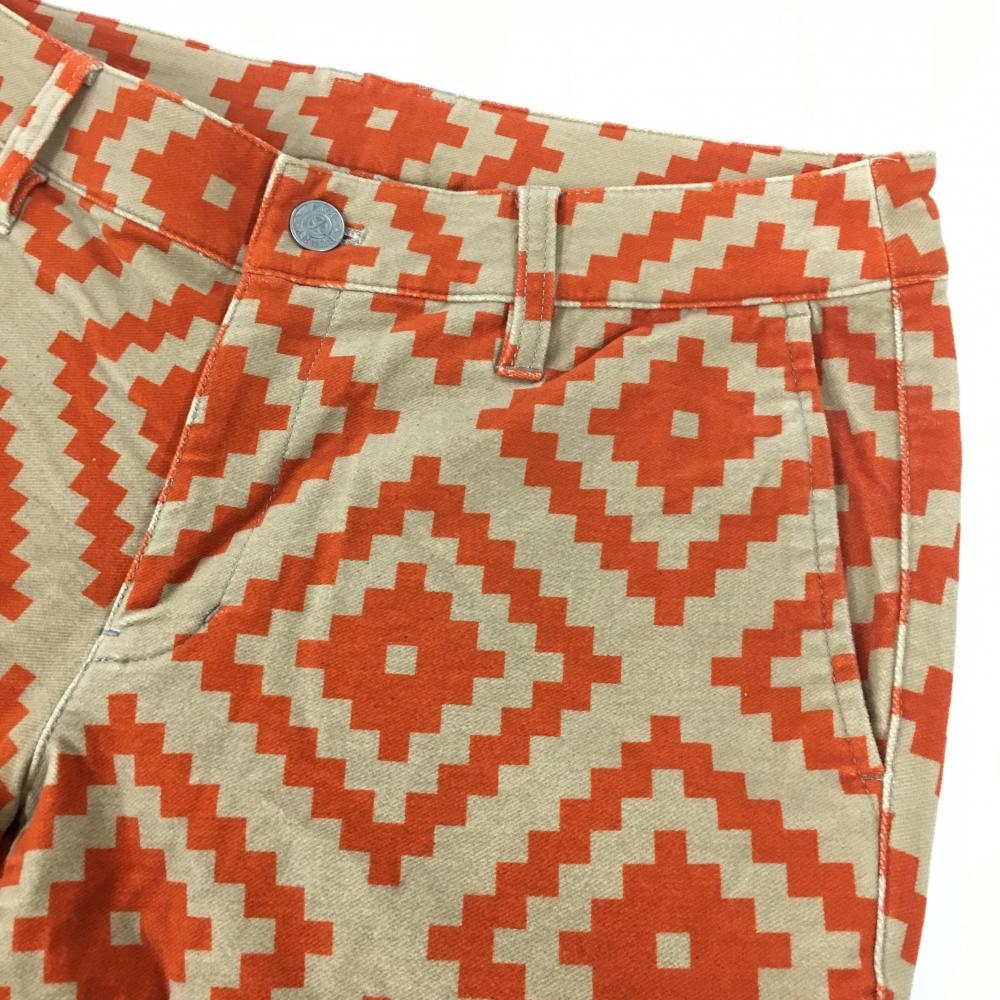 【美品】ジャックバニー パンツ ベージュ×オレンジ 総柄 表微起毛 レディース 1(M) ゴルフウェア Jack Bunny