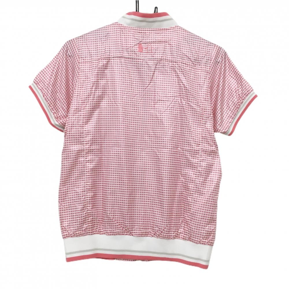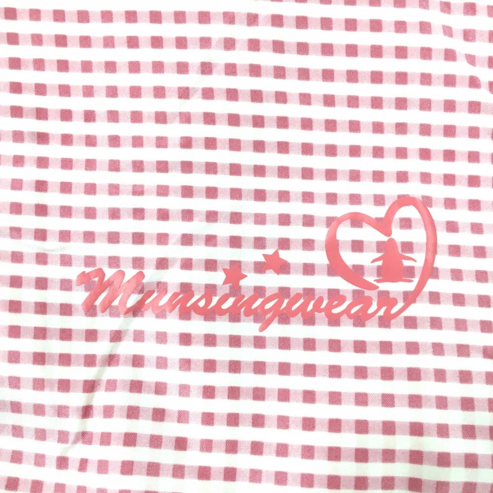 【超美品】マンシングウェア 半袖ジャケット ピンク×白 チェック 裏地メッシュ レディース M ゴルフウェア Munsingwear