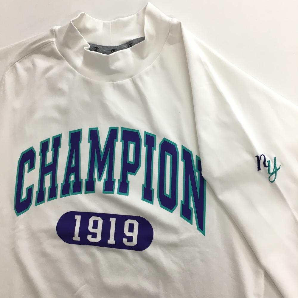 チャンピオン 長袖ハイネックシャツ 白×パープル ロゴプリント レディース S ゴルフウェア Champion