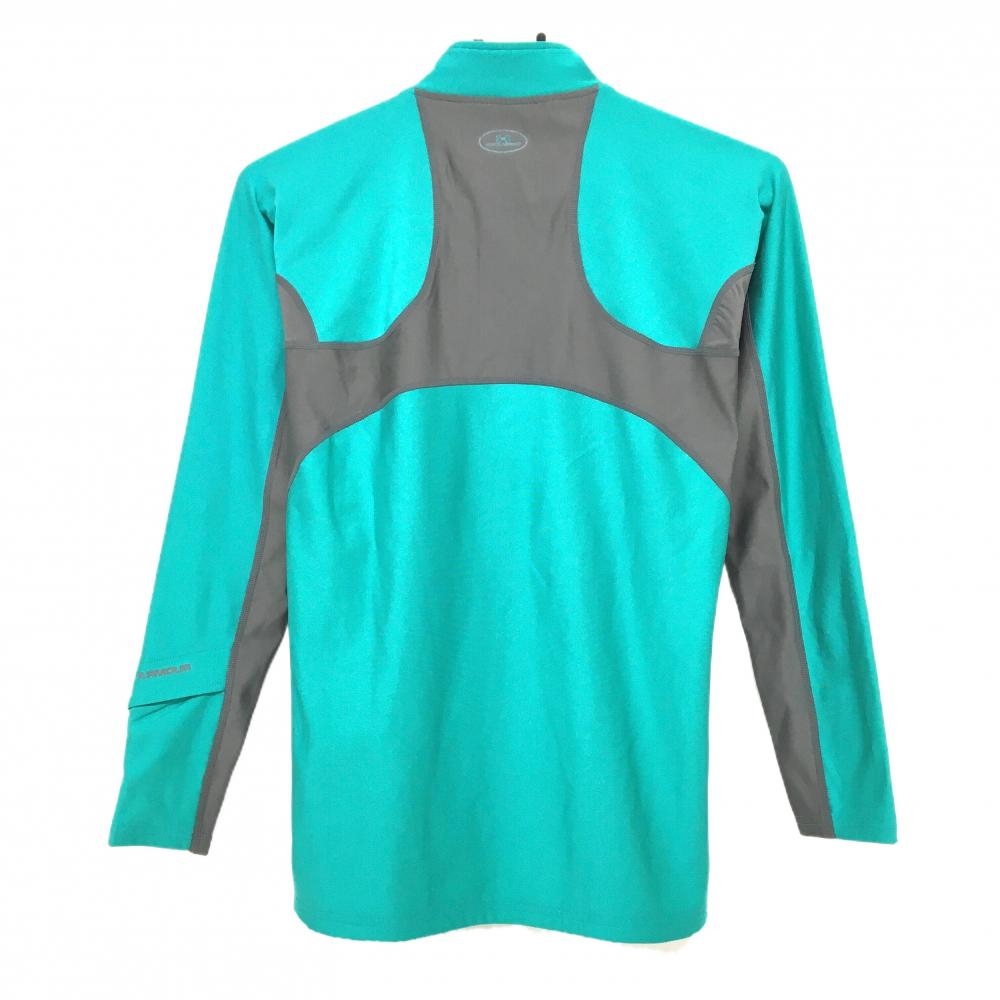 【美品】アンダーアーマー 長袖ハイネックシャツ グリーン×グレー ハーフジップ ストレッチ レディース M ゴルフウェア UNDER ARMOUR