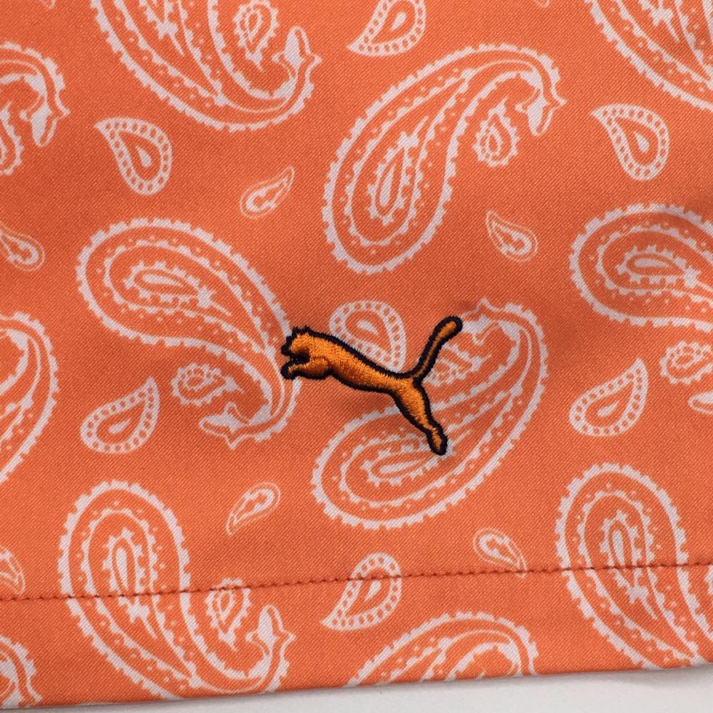 【超美品】プーマ スカート オレンジ×白 ペイズリー柄 ロゴ刺しゅう レディース S ゴルフウェア PUMA