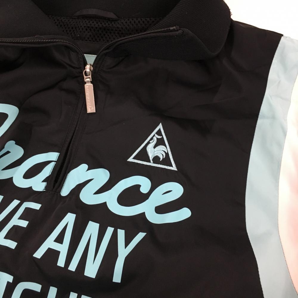 【美品】ルコック 2WAYブルゾン 黒×ライトブルー 裏地メッシュ ハーフジップ 袖着脱可 レディース L ゴルフウェア le coq sportif