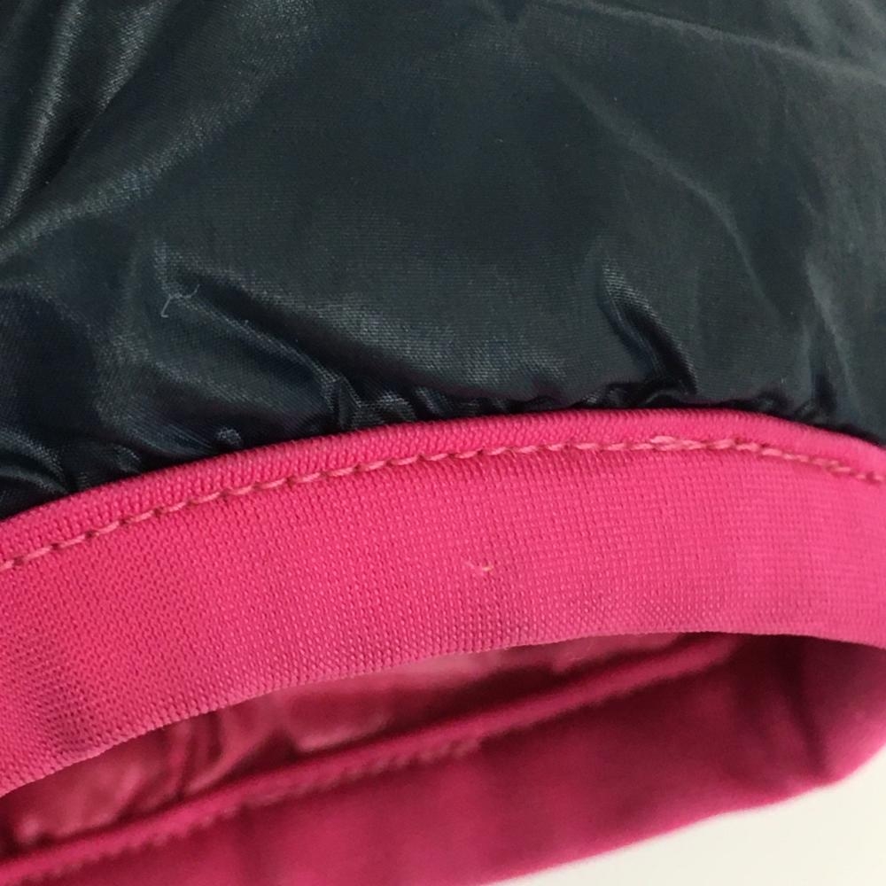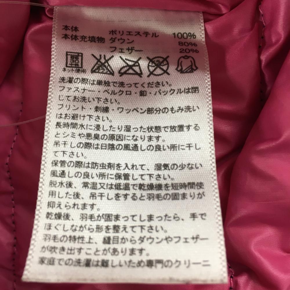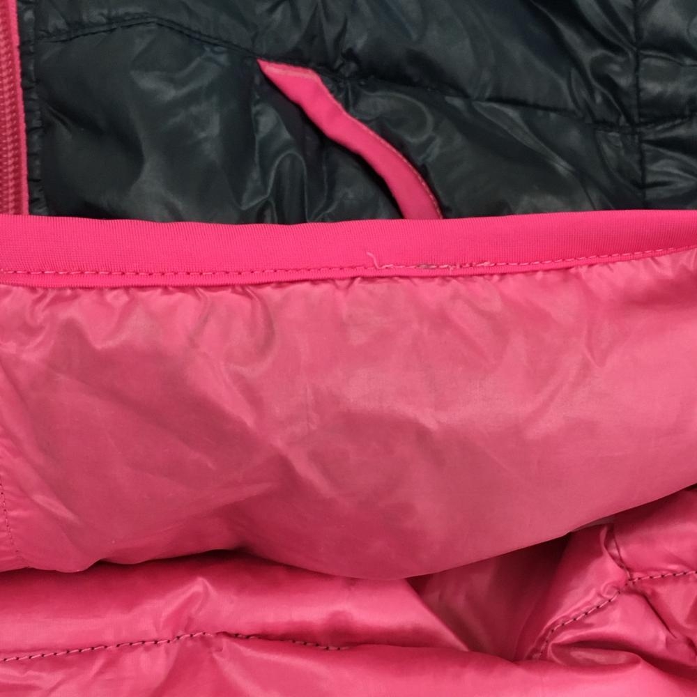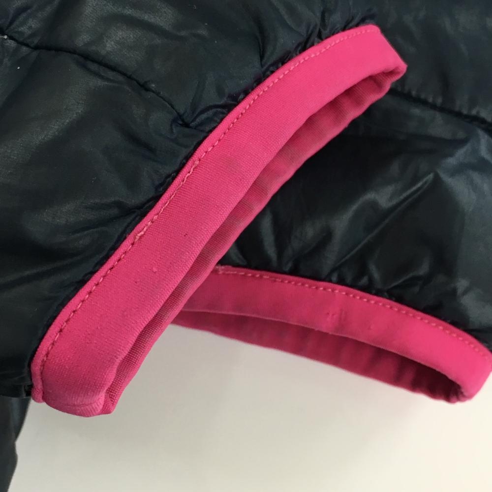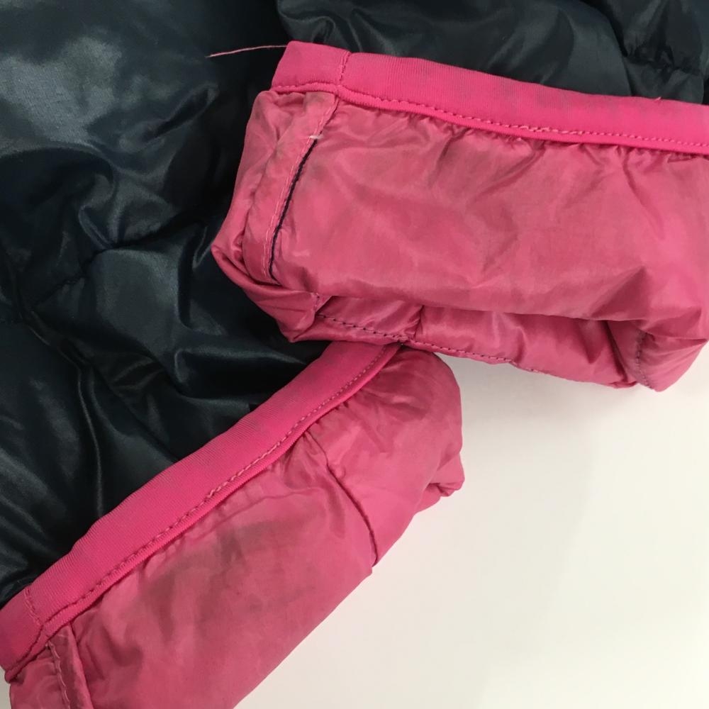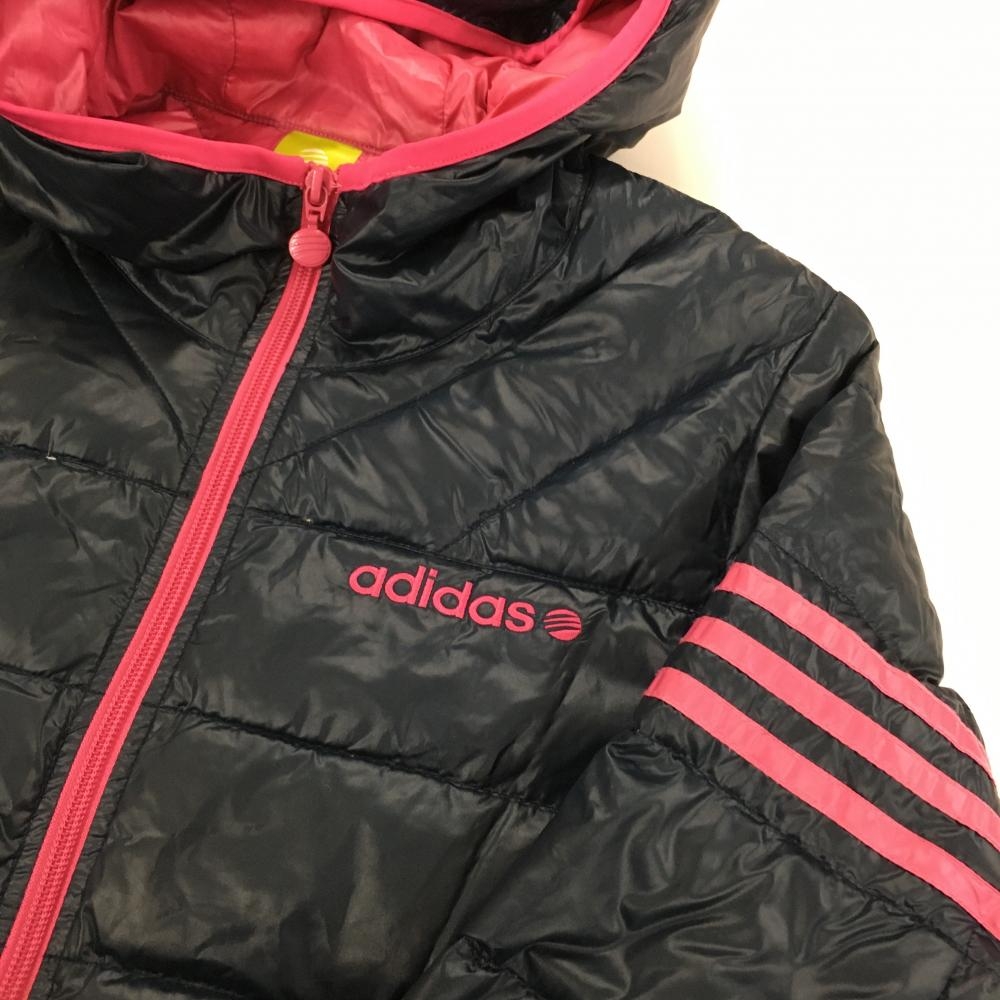 アディダス フード付ダウンジャケット ネイビー×ピンク 軽量 袖3ライン レディース L ゴルフウェア adidas