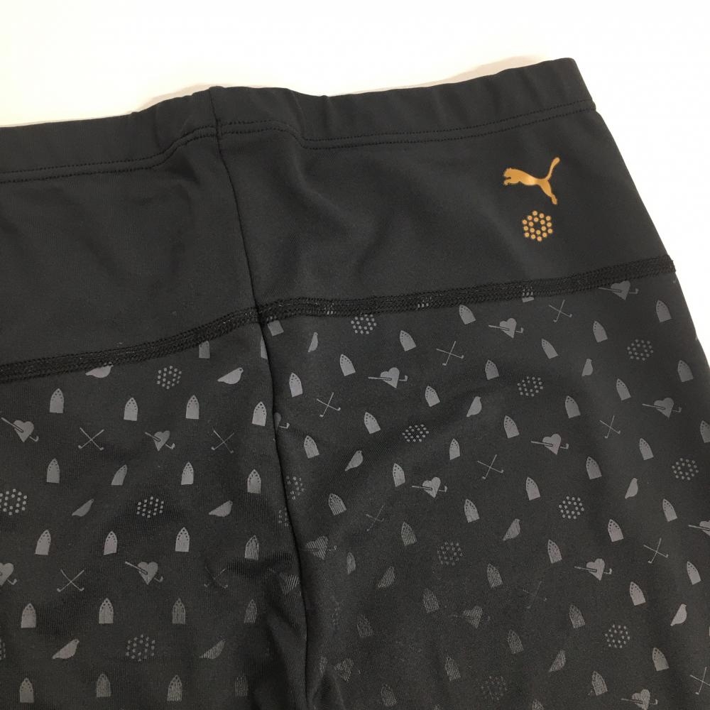 プーマ レギンス 黒×グレー 総柄 スパッツ DRYCELL レディース L ゴルフウェア PUMA
