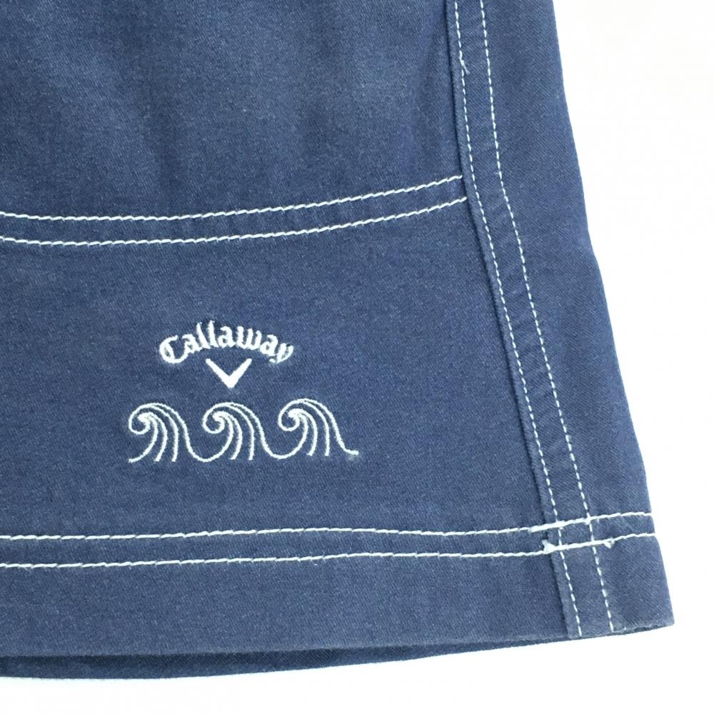 キャロウェイ スカート ネイビー×白 ステッチ ロゴ刺しゅう レディース S ゴルフウェア Callaway