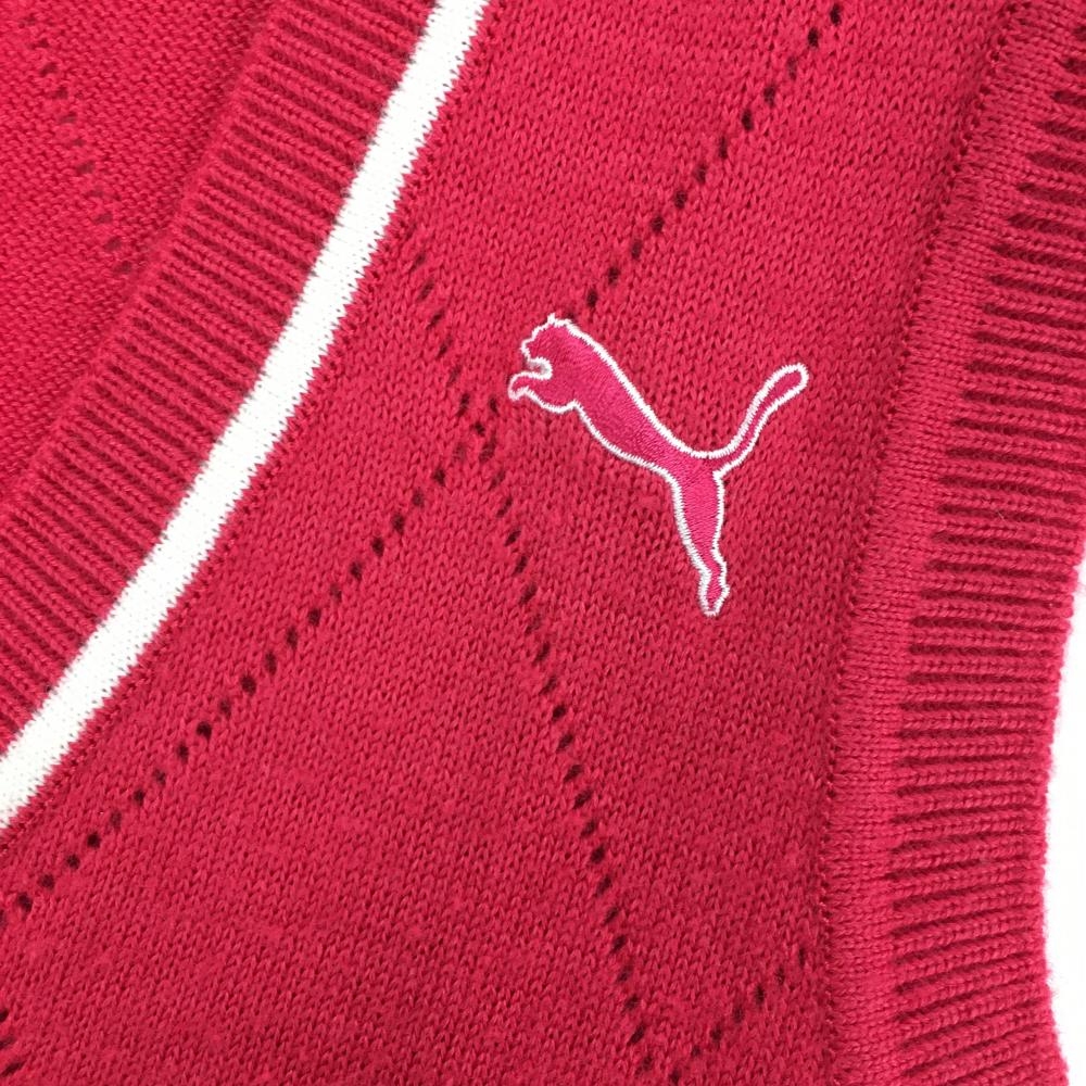 プーマ ニットベスト レッドピンク×白 ダイヤ柄 Vネック 胸元ロゴ レディース S ゴルフウェア PUMA