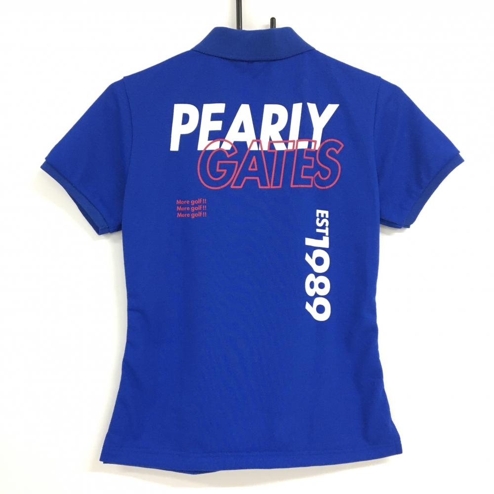 パーリーゲイツ 半袖ポロシャツ ブルー×白 後ビックプリント レディース 1(M) ゴルフウェア PEARLY GATES