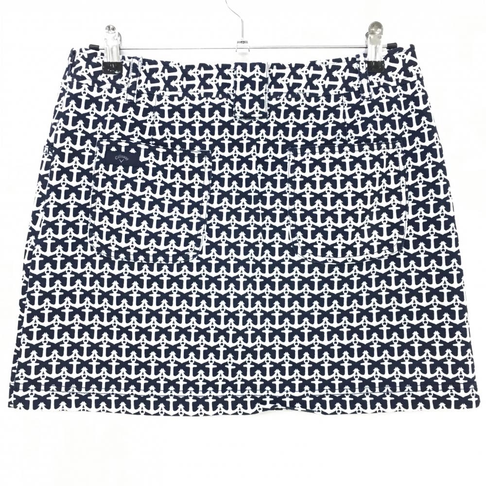 【美品】キャロウェイ スカート ネイビー×白 イカリ柄 内側インナーパンツ レディース L ゴルフウェア Callaway