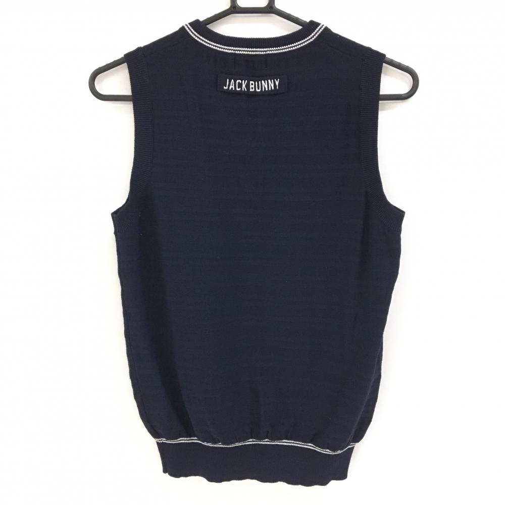 【美品】ジャックバニー ニットベスト ネイビー×白 Vネック ボーダー ロゴワッペン レディース 1(M) ゴルフウェア Jack Bunny