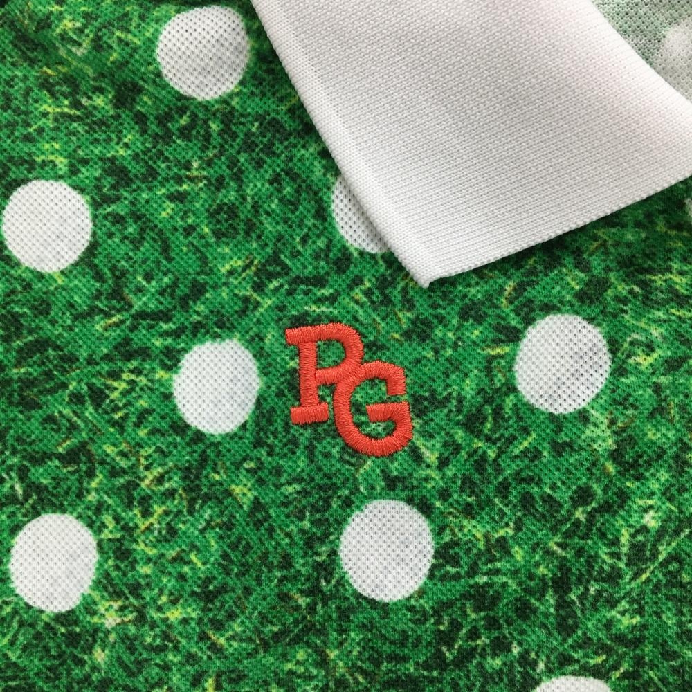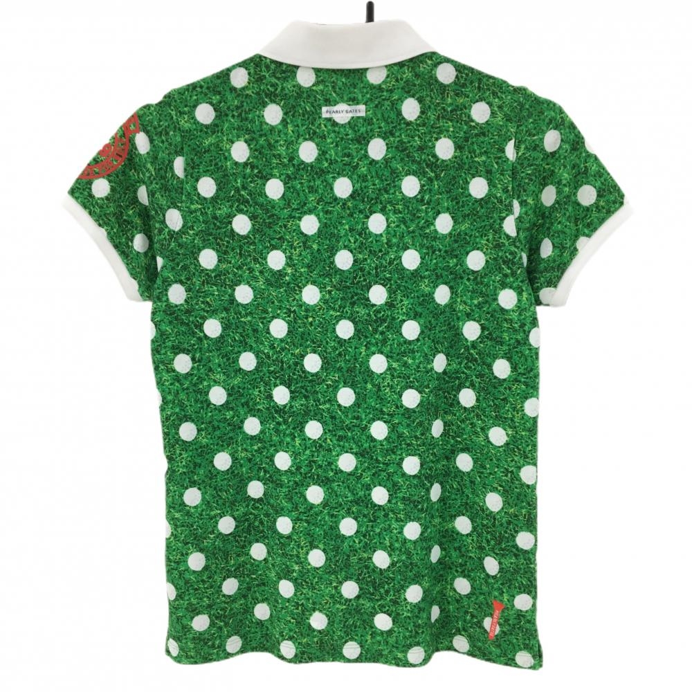 【美品】パーリーゲイツ 半袖ポロシャツ グリーン×白 ドット ゴルフボール柄 レディース 0(S) ゴルフウェア PEARLY GATES