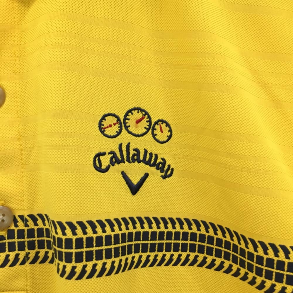 キャロウェイ 半袖ポロシャツ イエロー ボーダー織生地 一部柄 メンズ M ゴルフウェア Callaway