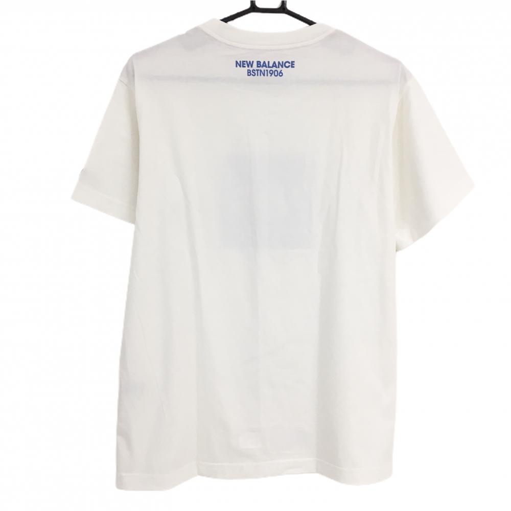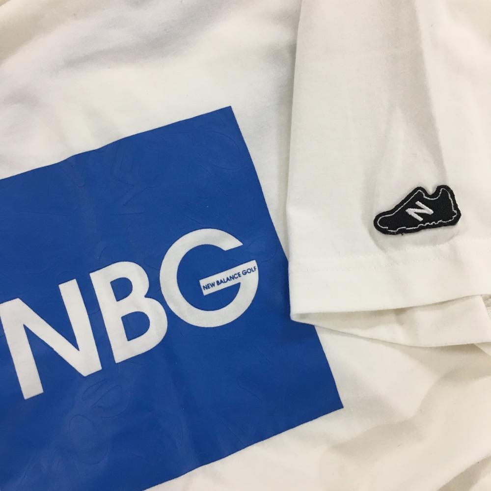 ニューバランス Tシャツ 白×ブルー フロントプリント 袖シューズワッペン メンズ 5(L) ゴルフウェア New Balance
