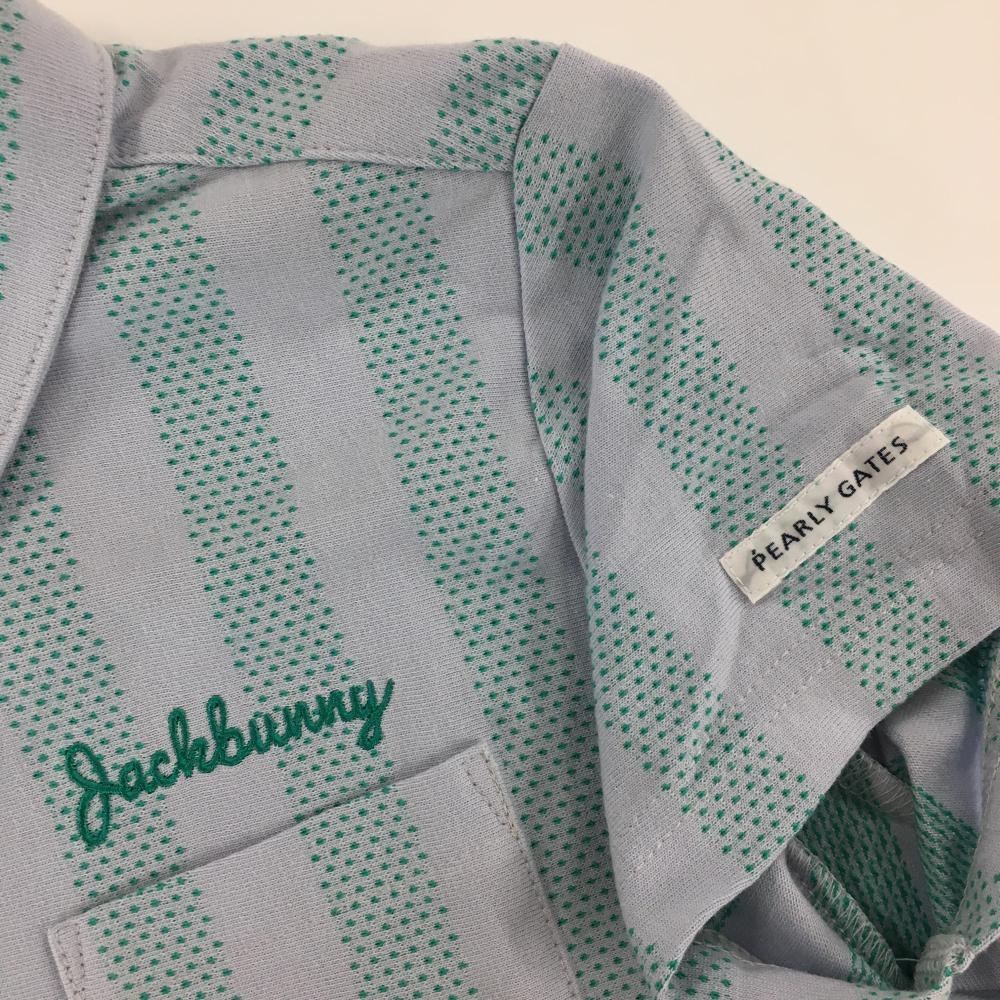 【新品】ジャックバニー 半袖ポロシャツ グレー×グリーン ストライプ調 レディース S ゴルフウェア Jack Bunny