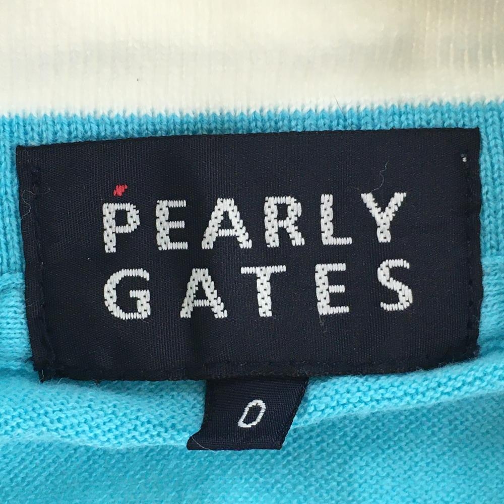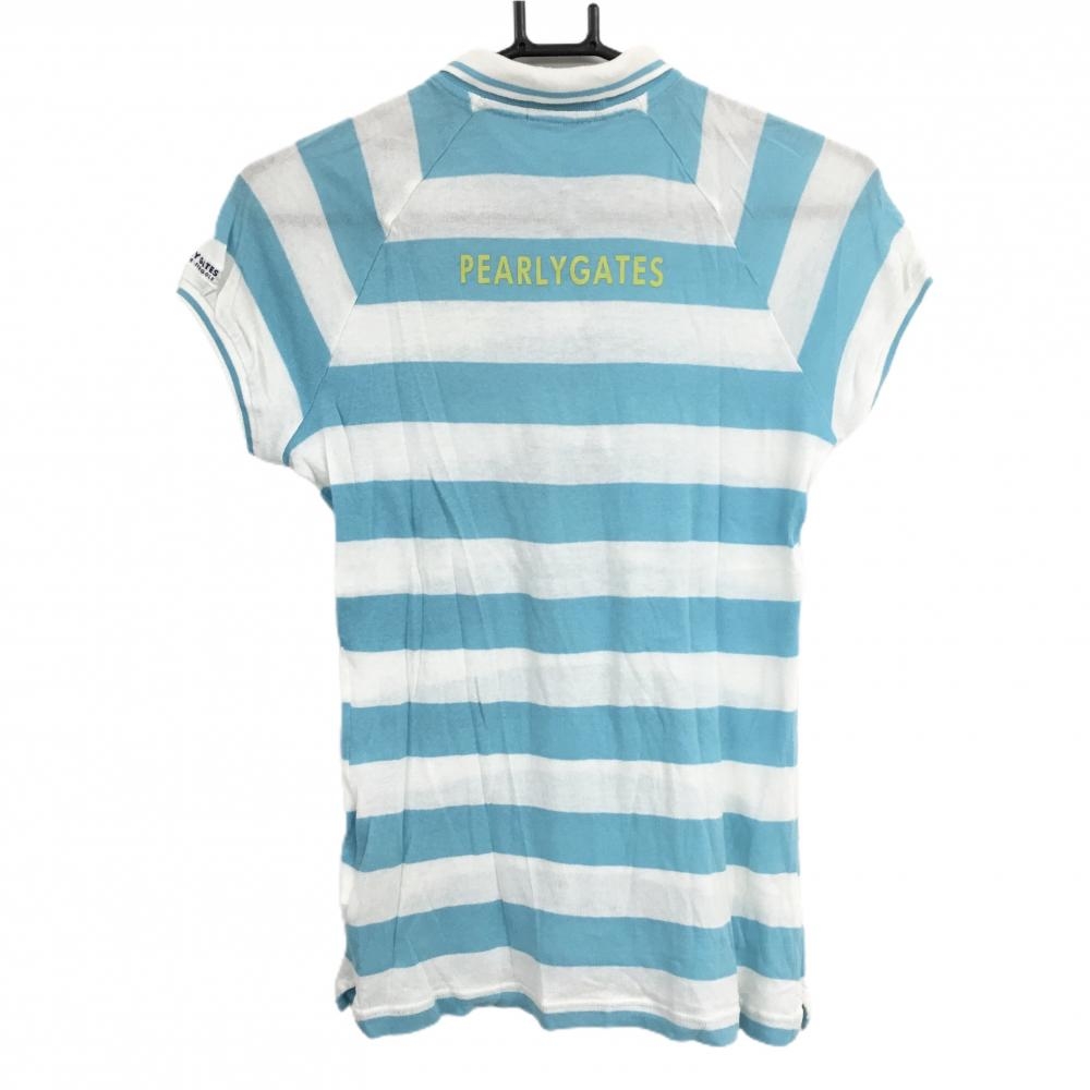 パーリーゲイツ ニット半袖ポロシャツ 白×ライトブルー ボーダー レディース 0(S) ゴルフウェア PEARLY GATES