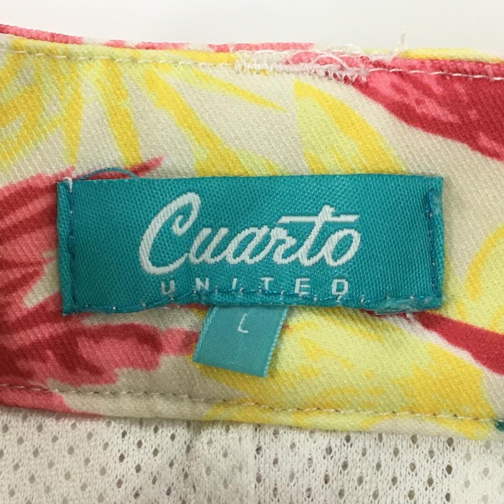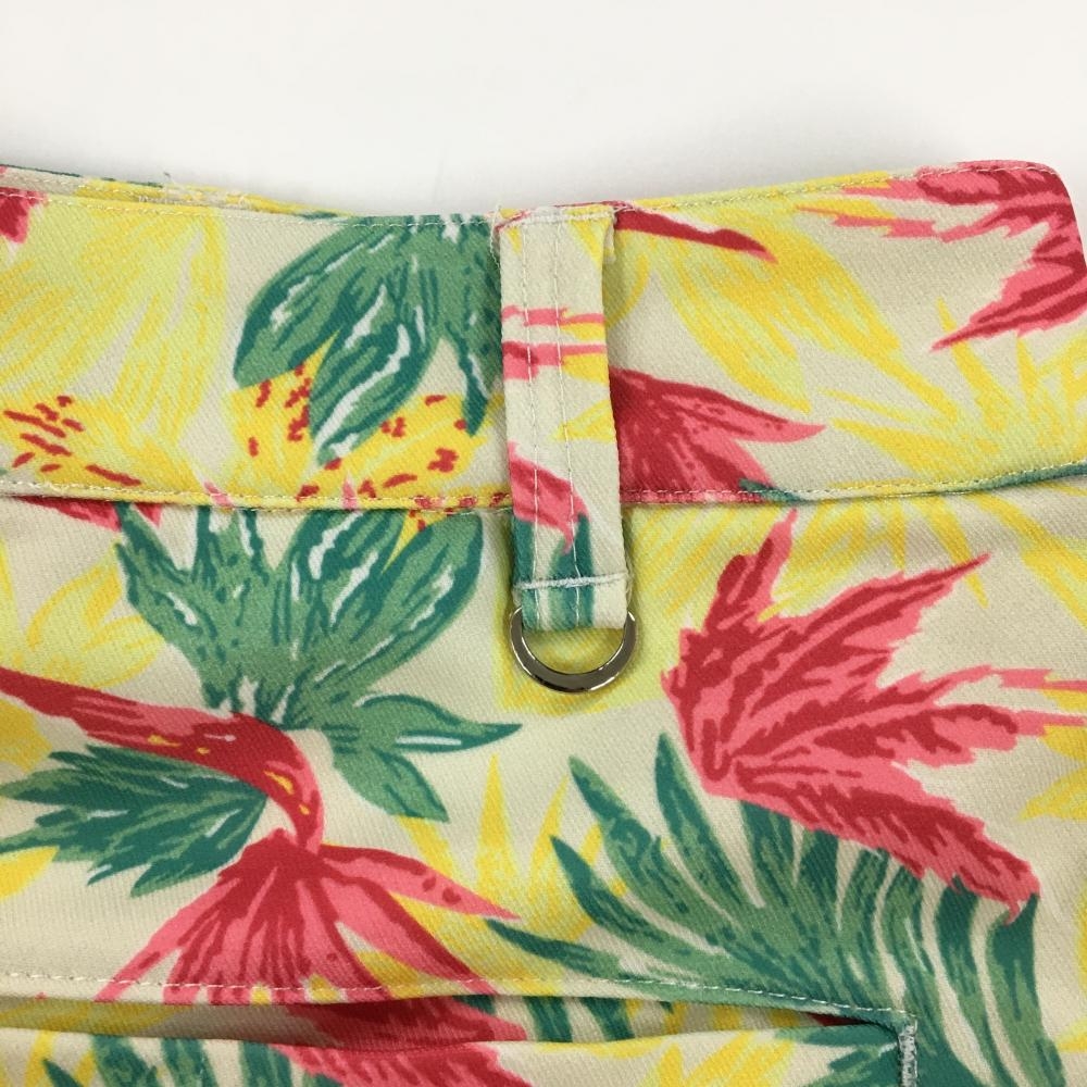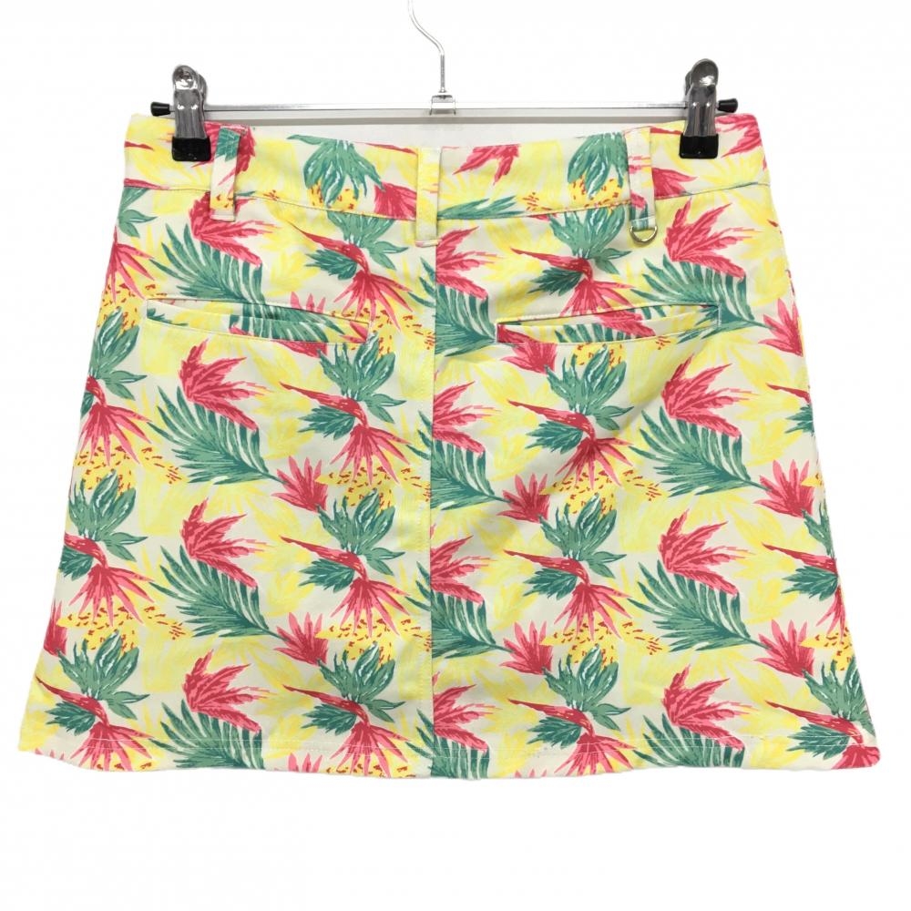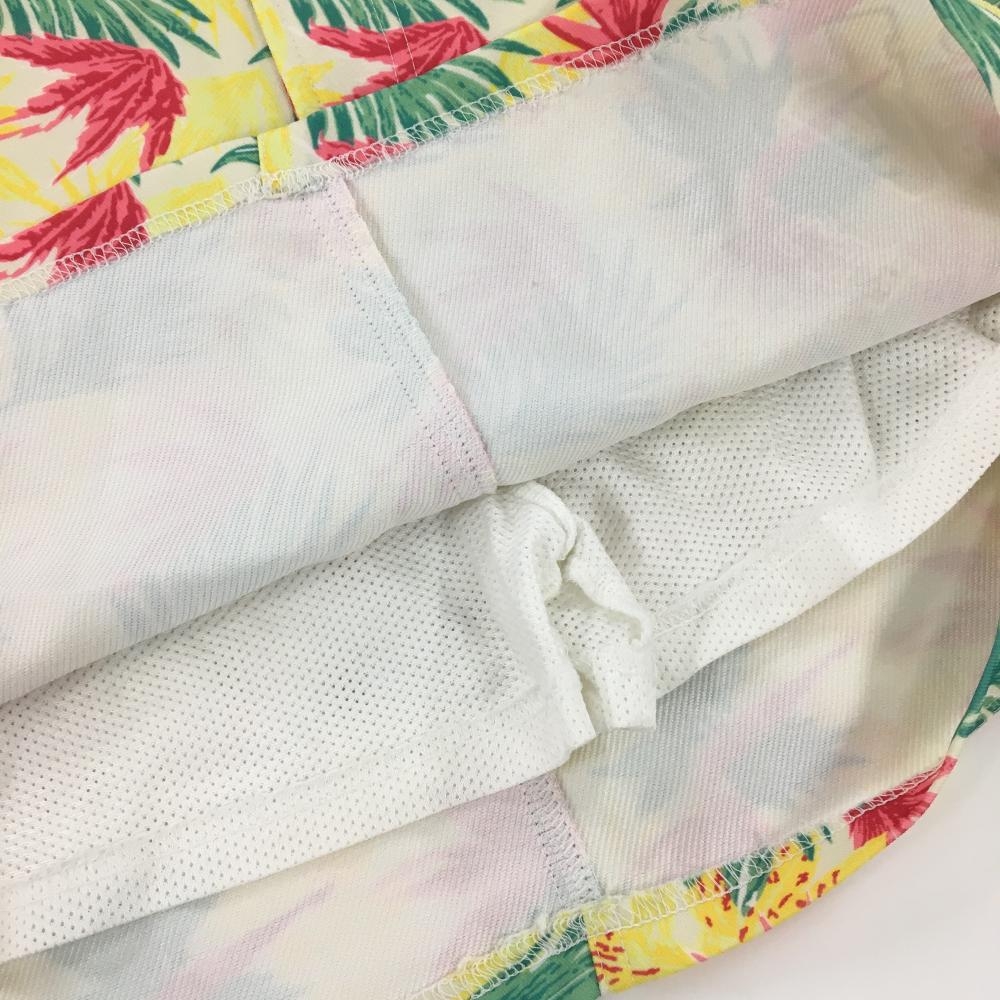 【超美品】クアルトユナイテッド スカート アイボリー×マルチカラー リーフ柄 ロゴプリント レディース L ゴルフウェア CUARTO UNITED