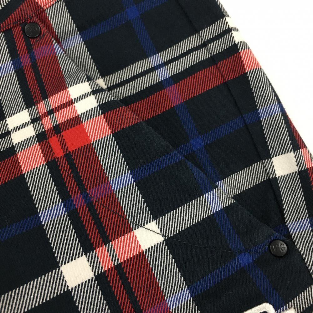 【美品】パーリーゲイツ パンツ ネイビー×レッド チェック ストレッチ レディース 1(M) ゴルフウェア PEARLY GATES