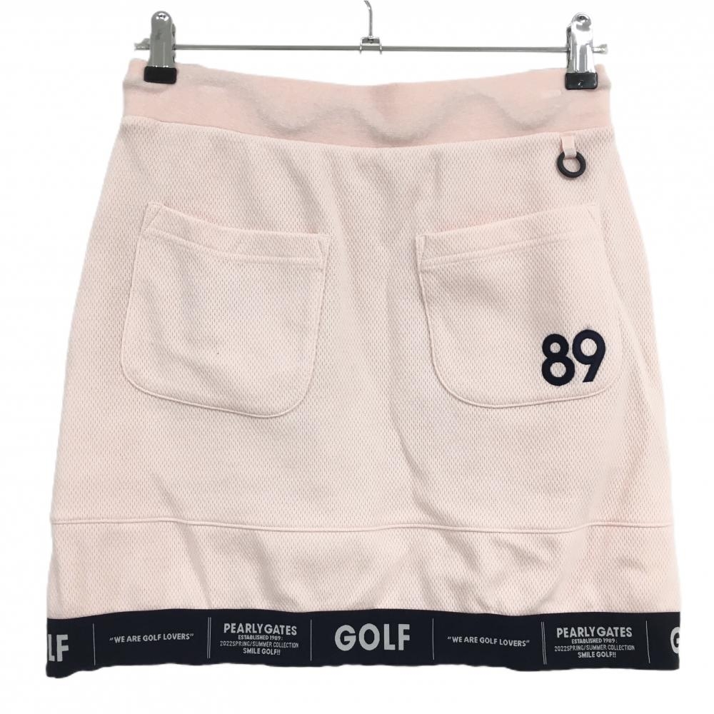 【超美品】パーリーゲイツ スカート ピンク×ネイビー 裾英字 織生地 レディース 1(M) ゴルフウェア PEARLY GATES