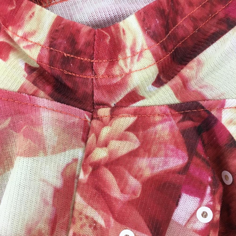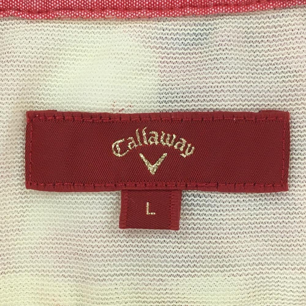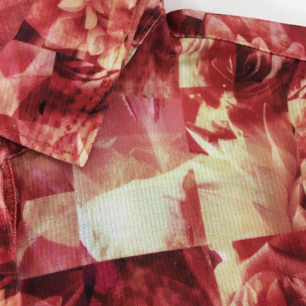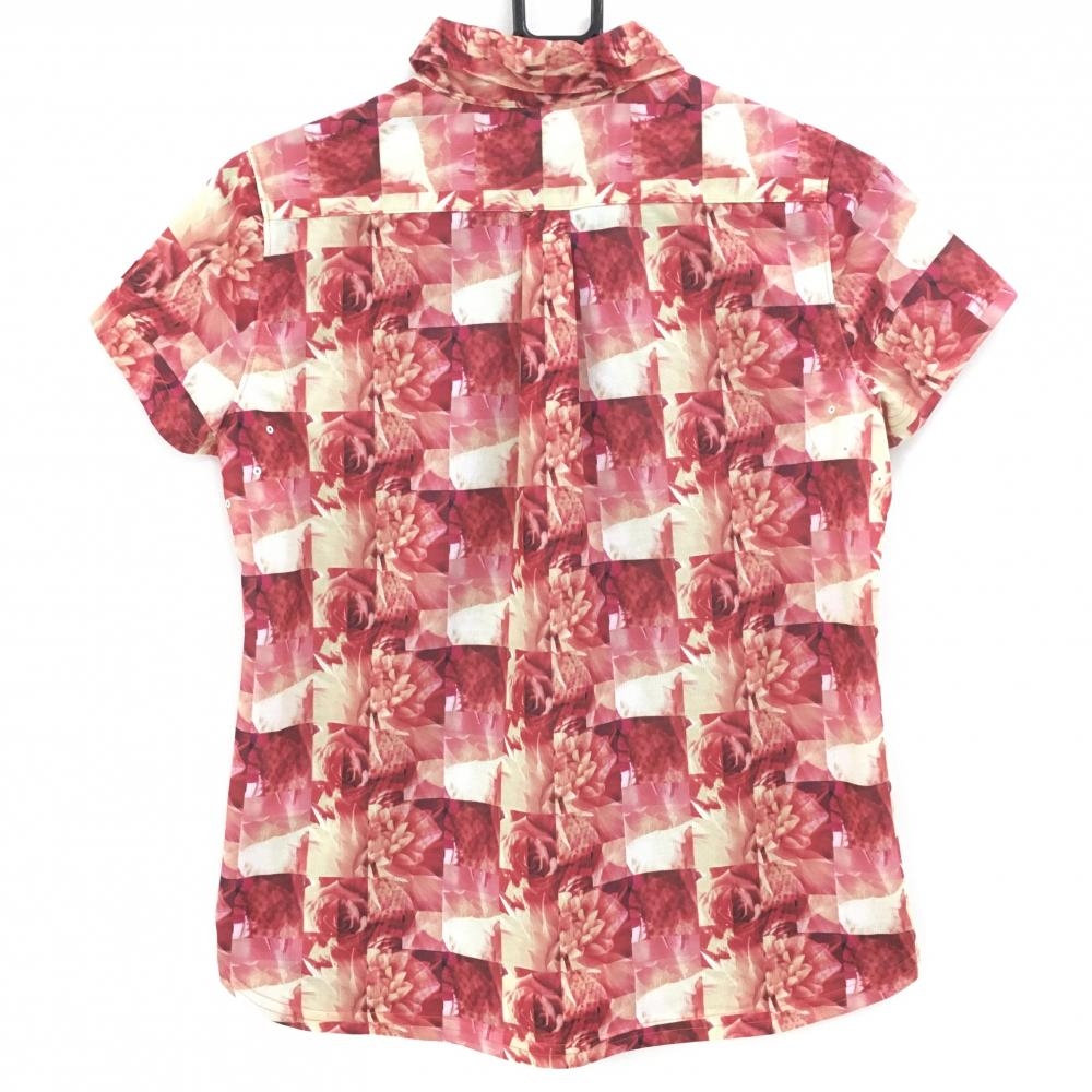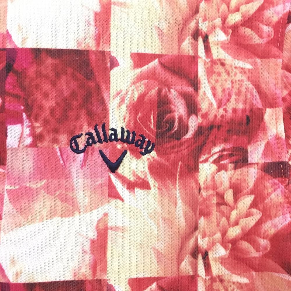 キャロウェイ レッドレーベル 半袖ポロシャツ レッド×ベージュ 花柄 ブロックチェック レディース L ゴルフウェア Callaway