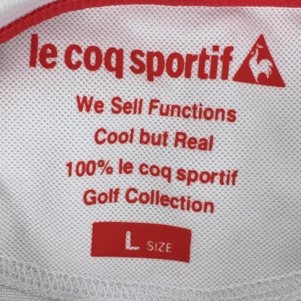 【美品】ルコック 半袖ポロワンピース 白×グレー 襟裏ボーダー ウエストゴム レディース L ゴルフウェア le coq sportif