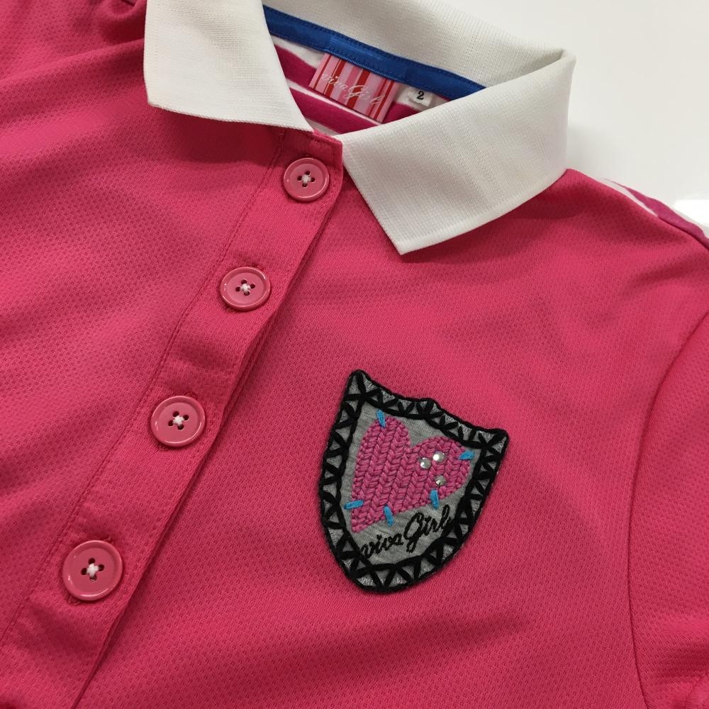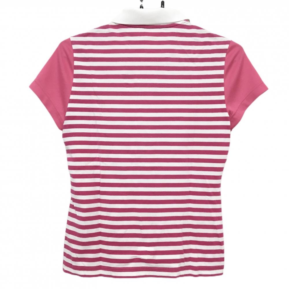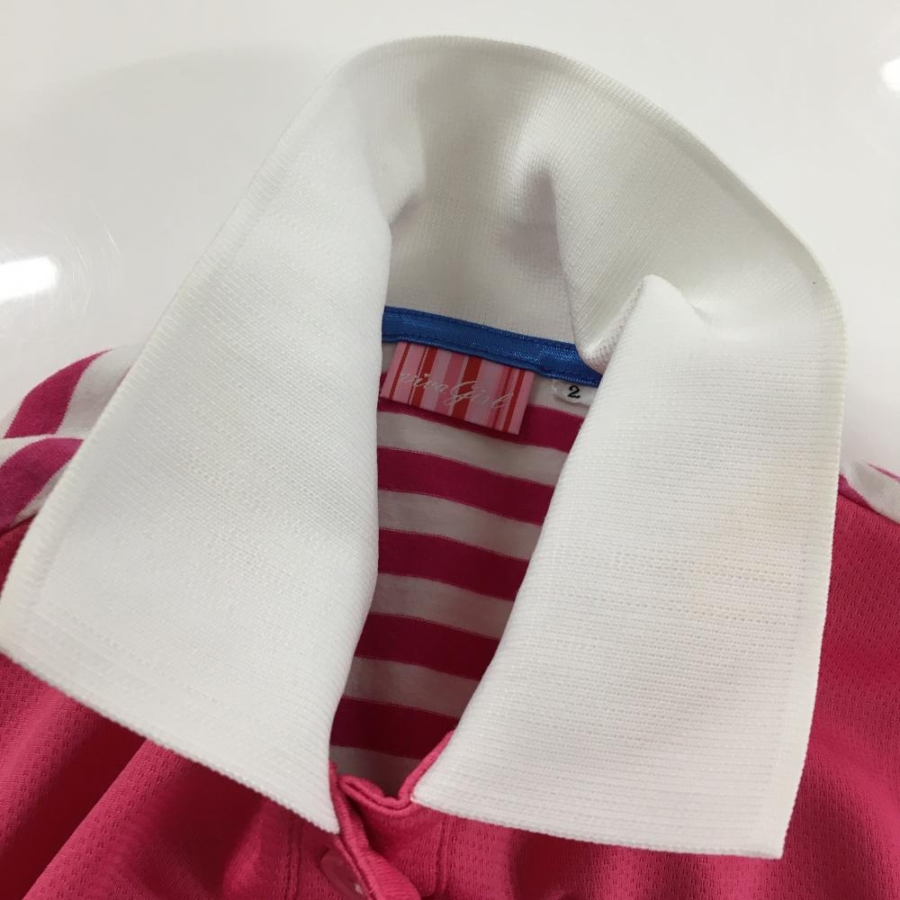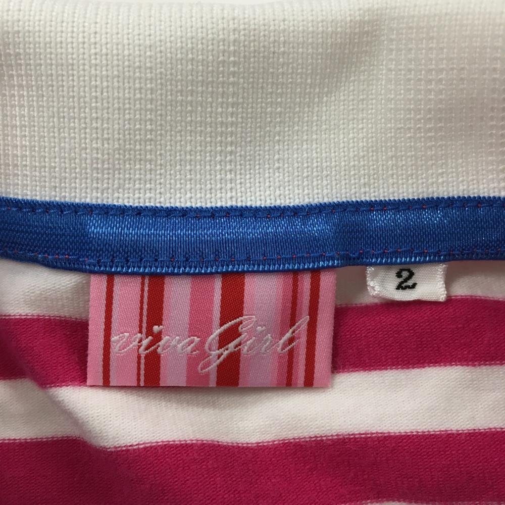 【美品】ビバガール 半袖ポロシャツ ピンク×白 背面ボーダー レディース 2(M) ゴルフウェア viva girl
