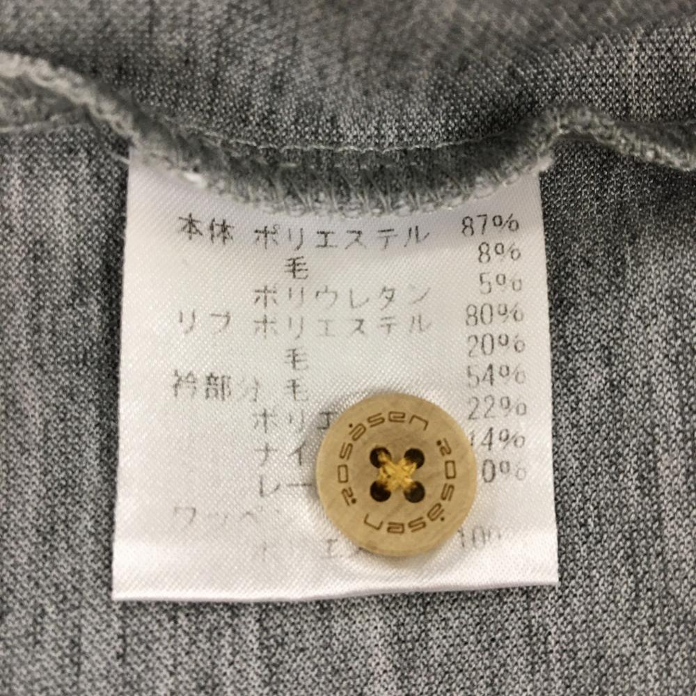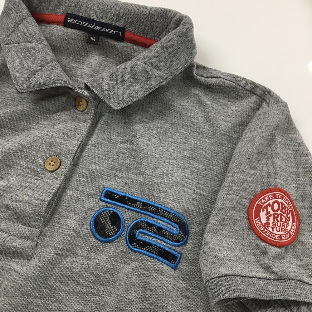 【超美品】ロサーセン 半袖ポロシャツ グレー 地模様 襟裏カモフラ風 袖ワッペン 胸元ロゴ レディース M ゴルフウェア Rosasen