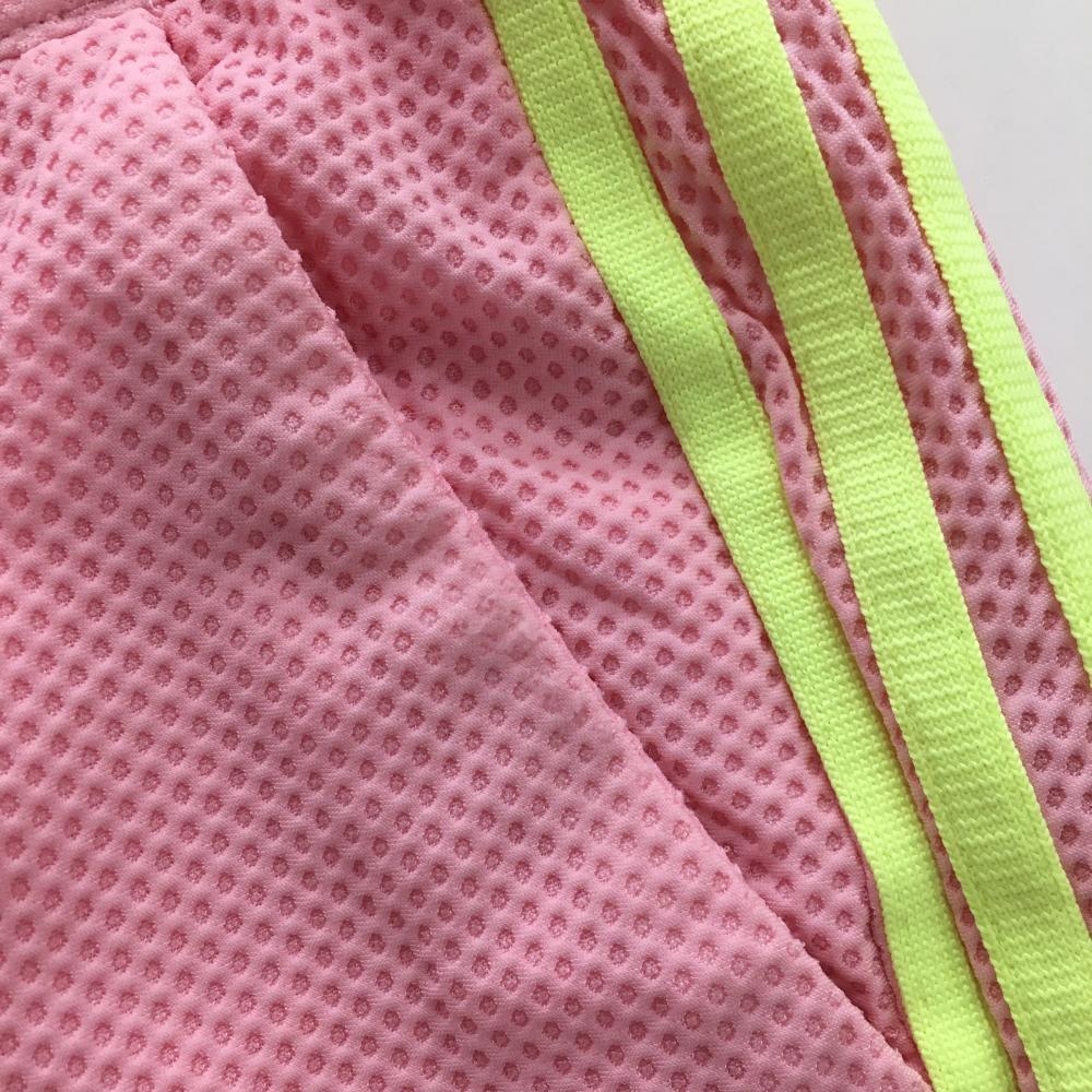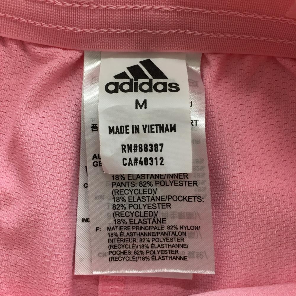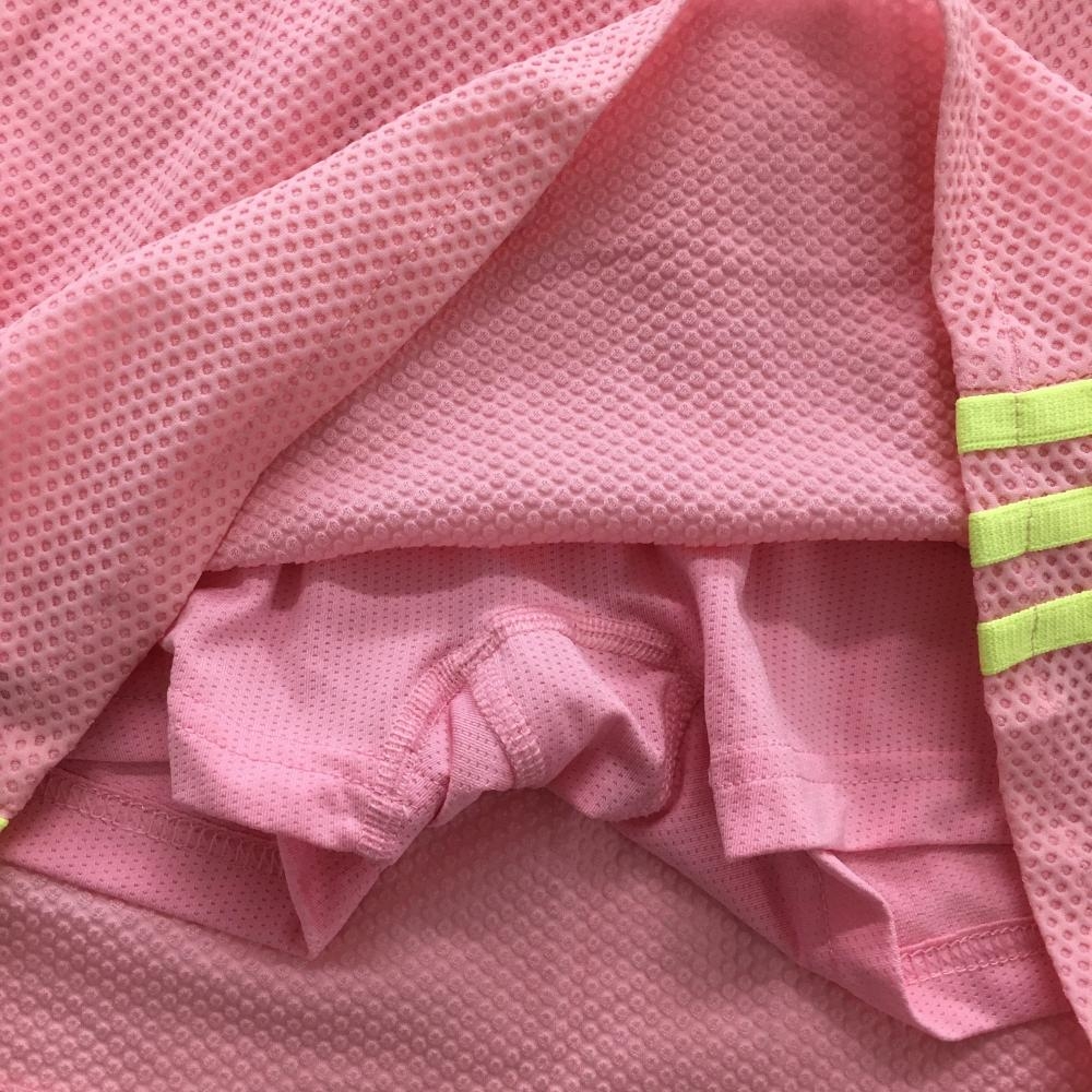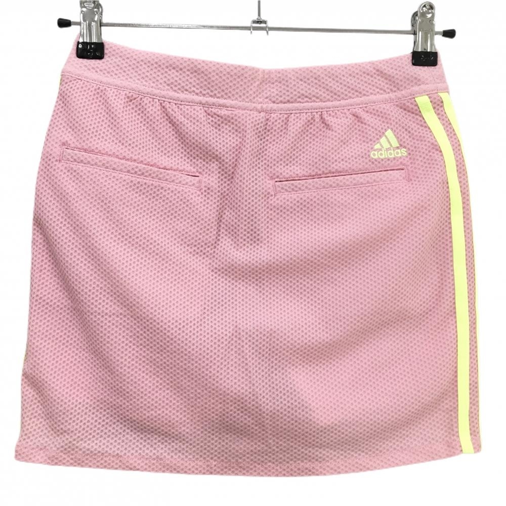 【美品】アディダス スカート ピンク×イエロー 凹凸生地 サイド3ライン 内側インナーパンツ レディース M ゴルフウェア adidas