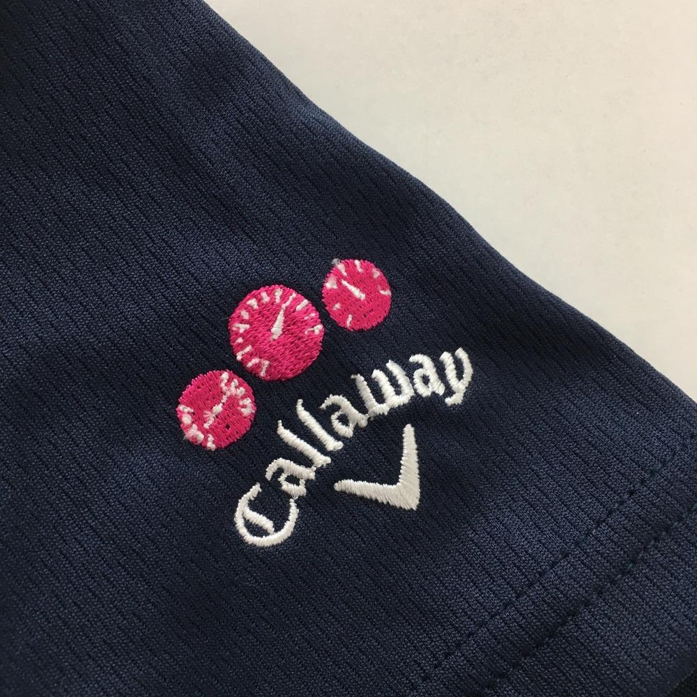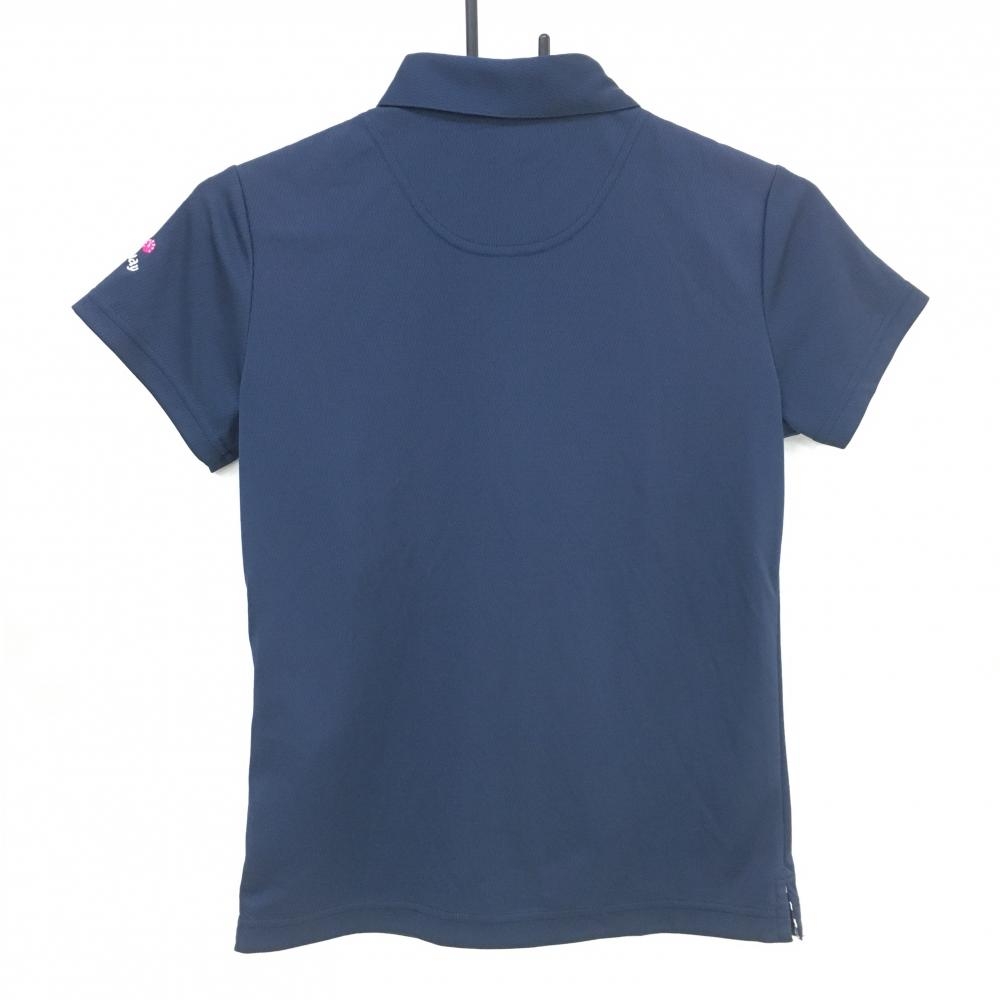 【美品】キャロウェイ 半袖ポロシャツ ネイビー×白 フロント英字 レディース M ゴルフウェア Callaway