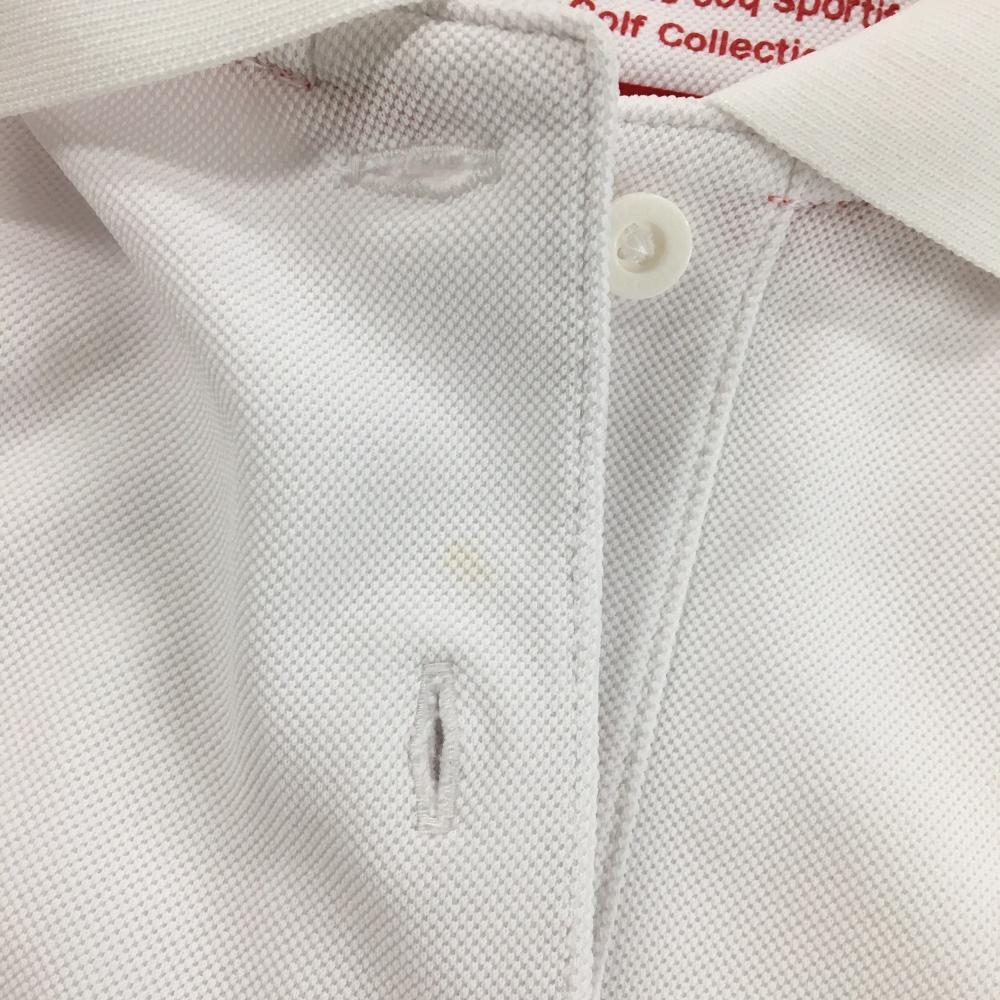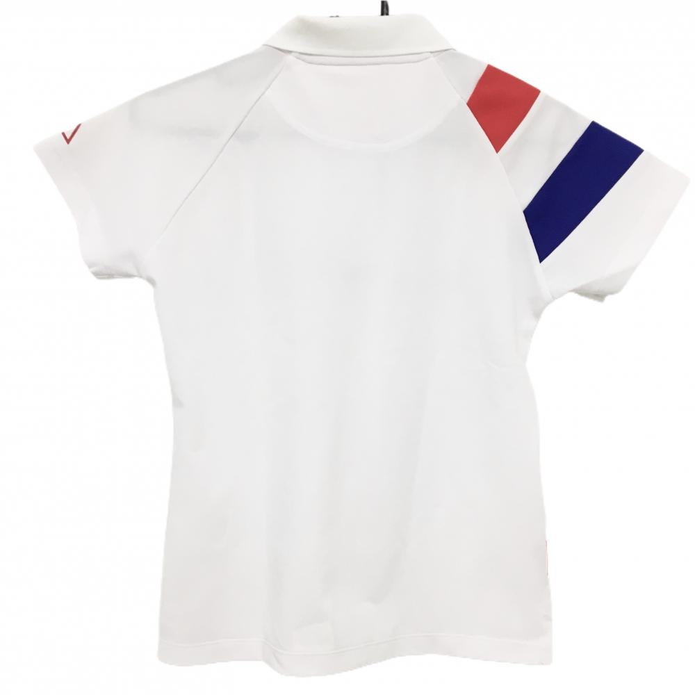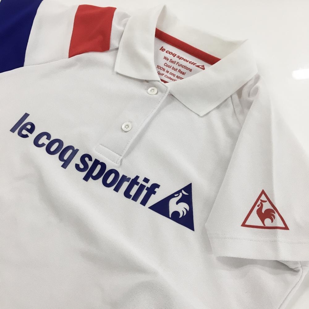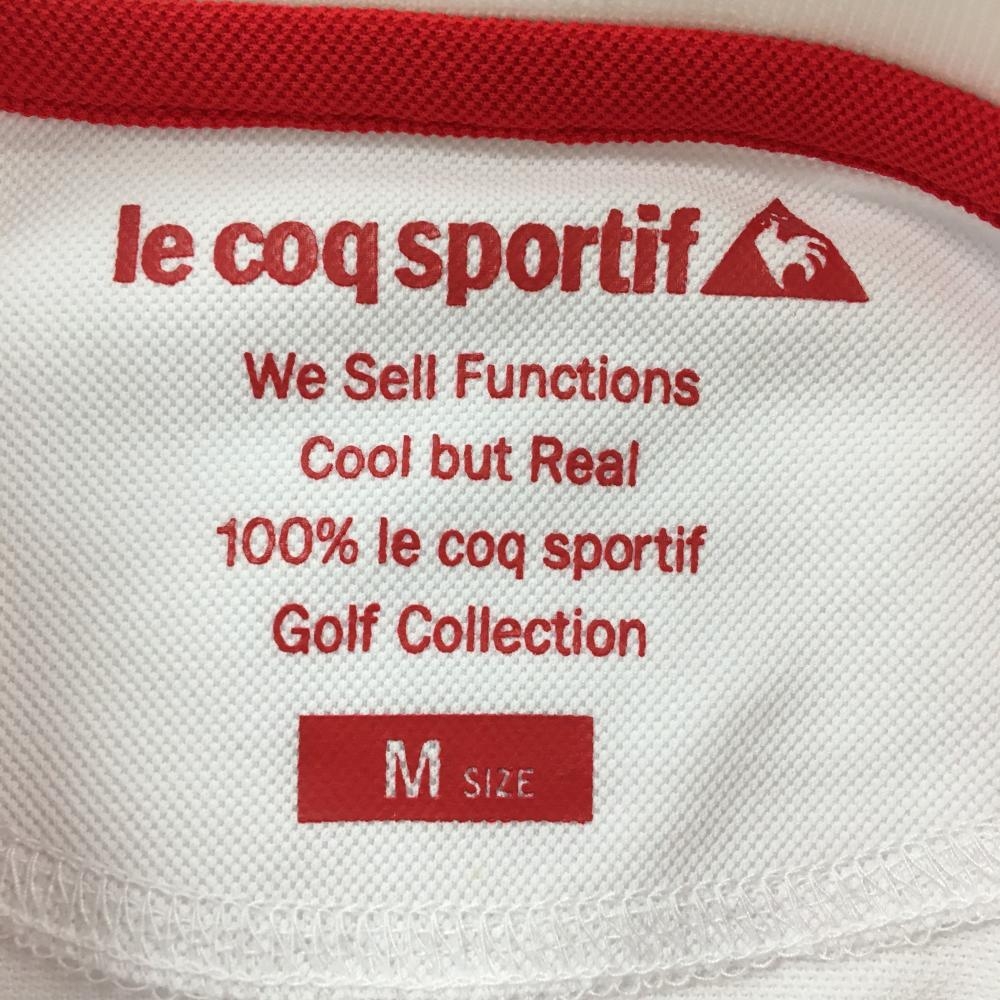 【美品】ルコック 半袖ポロシャツ 白×ブルー 袖トリコロール 前立て薄汚れ レディース M ゴルフウェア le coq sportif