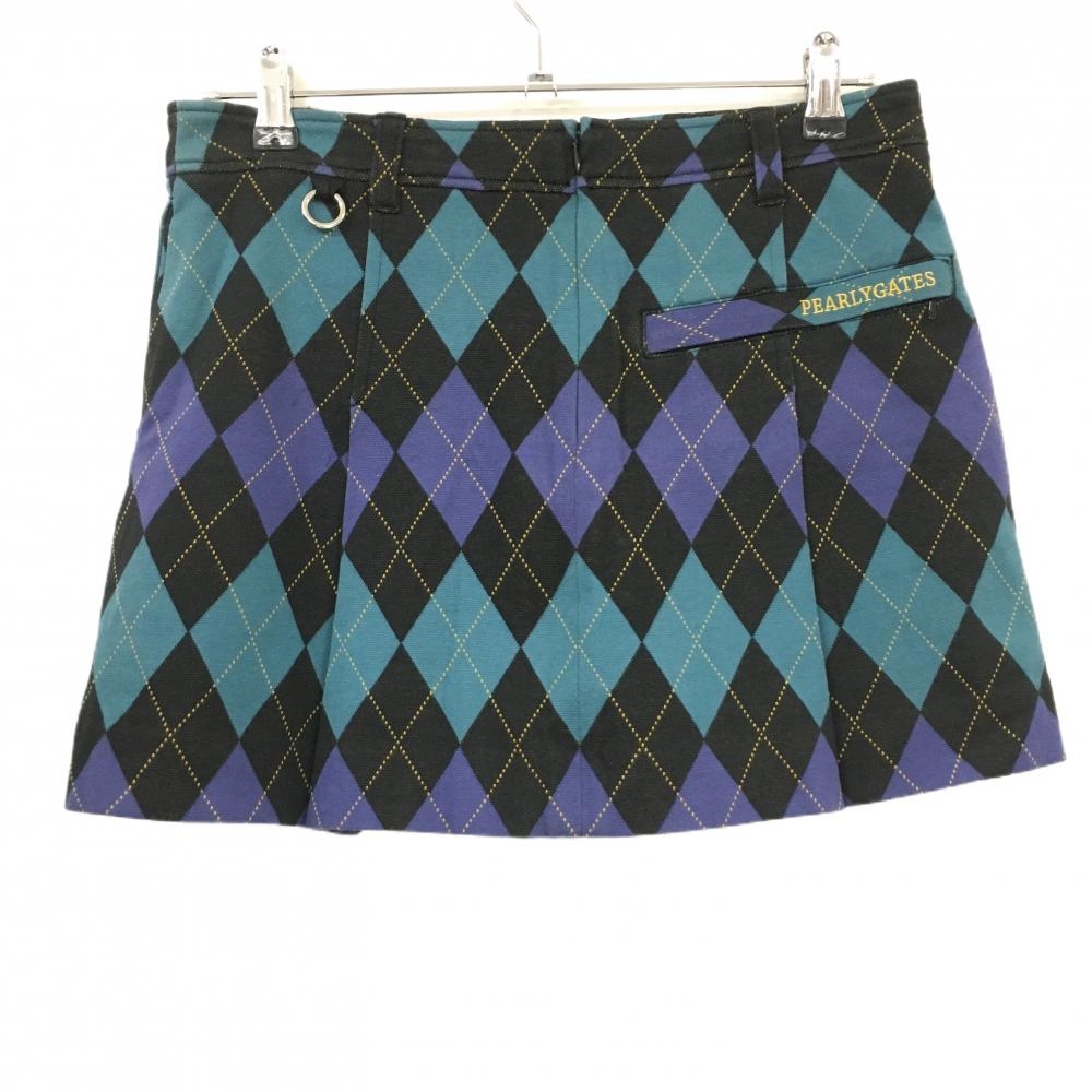 【超美品】パーリーゲイツ スカート ライトブルー×黒 アーガイル柄 内側インナーパンツ レディース 1(M) ゴルフウェア PEARLY GATES