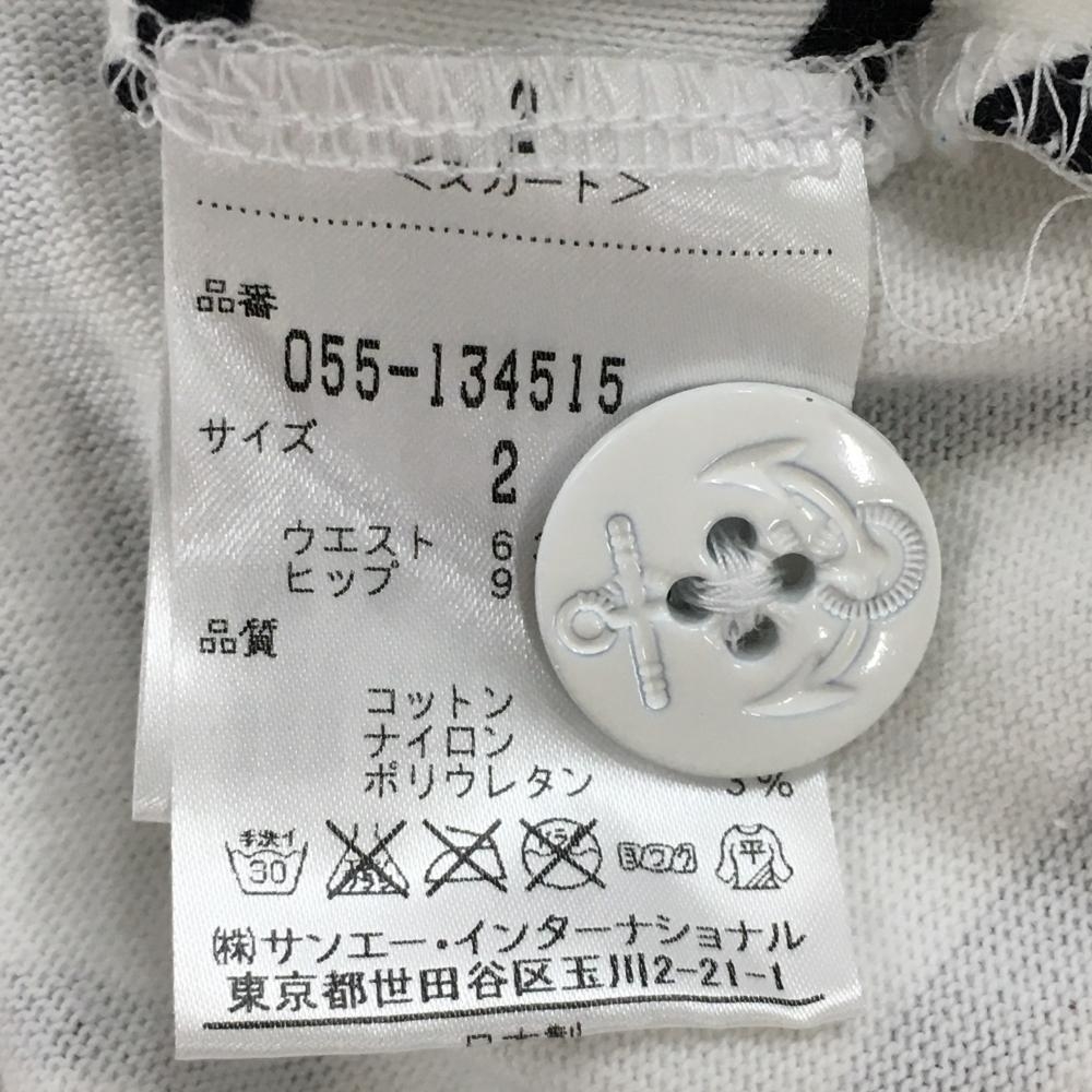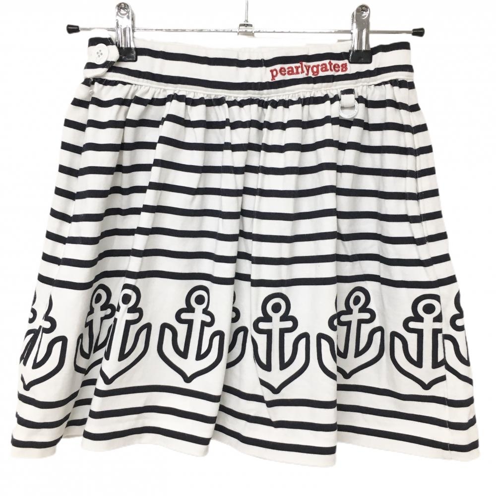 【美品】パーリーゲイツ スカート 白×ダークネイビー ボーダー イカリ柄 ウエストゴム レディース 2(L) ゴルフウェア PEARLY GATES