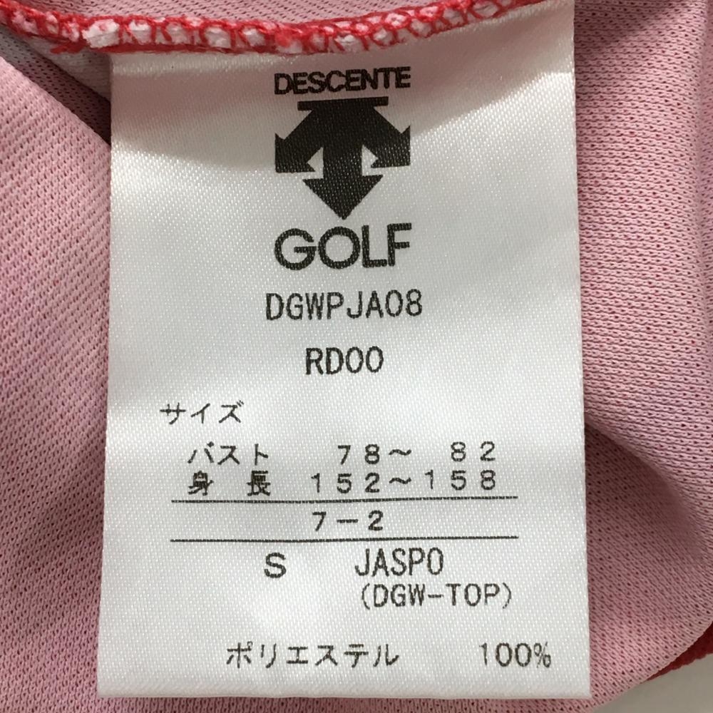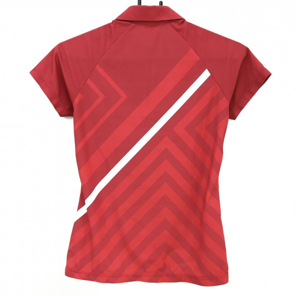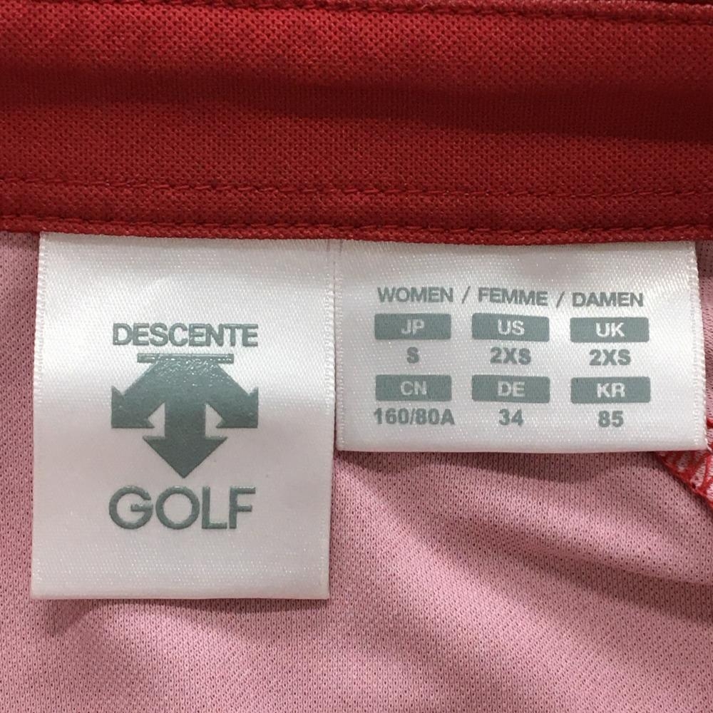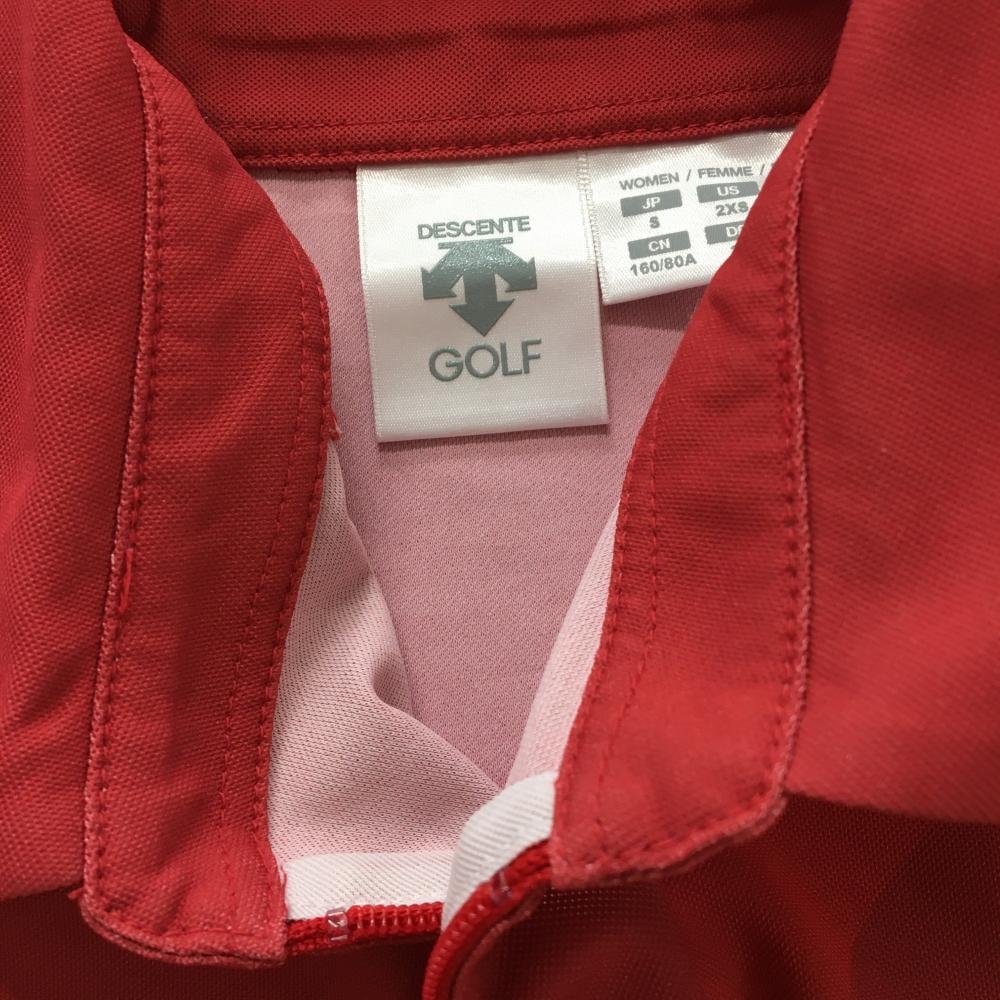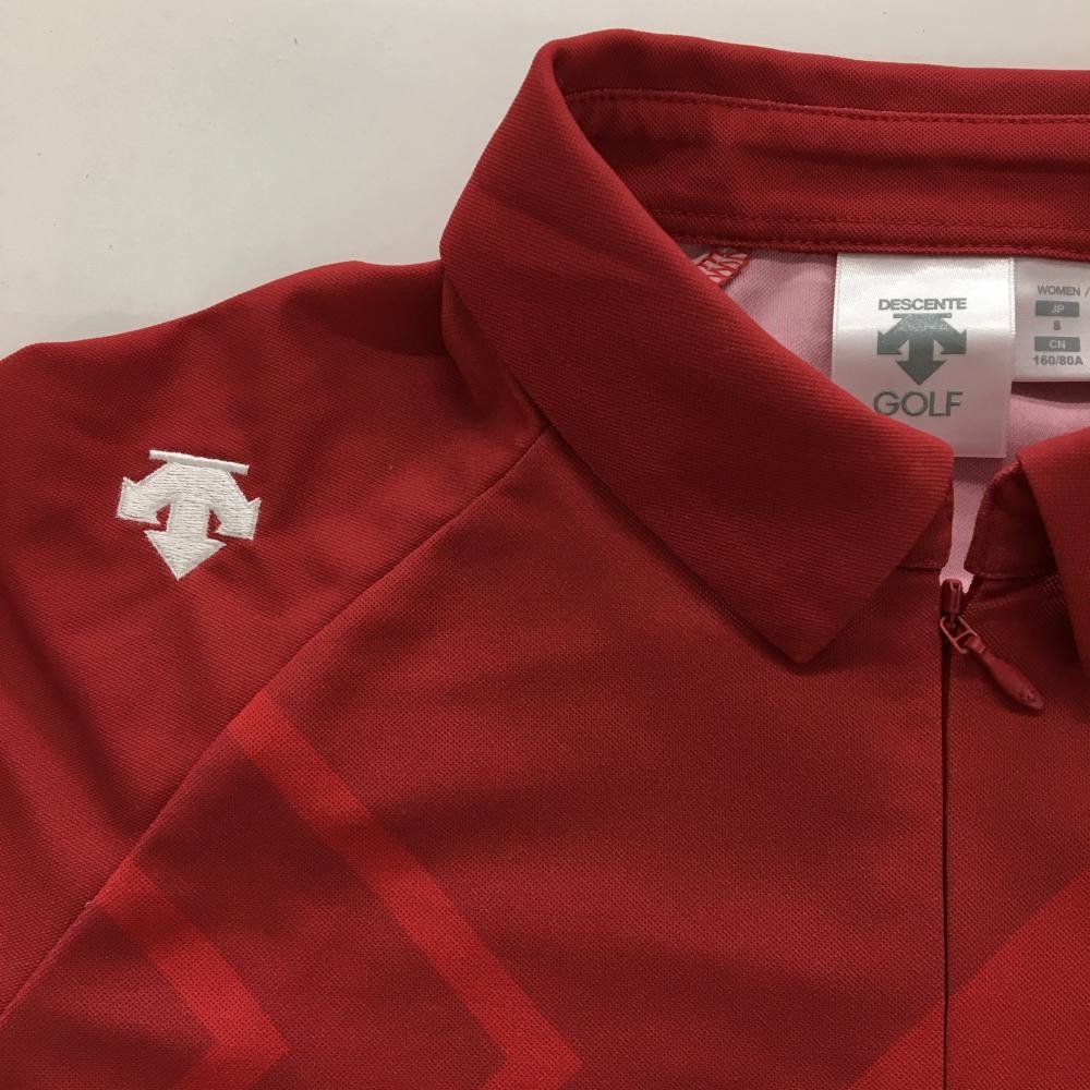 【美品】デサントゴルフ 半袖ポロシャツ レッド×白 身頃総柄 ハーフジップ 中田英寿 レディース S ゴルフウェア DESCENTE