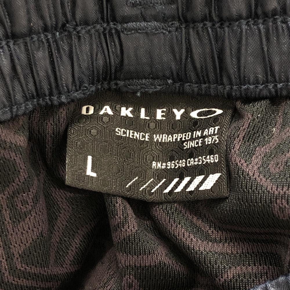 【美品】オークリー パンツ ネイビー×黒 裾ロゴ ウエストゴム 裏メッシュ ドローコード メンズ L ゴルフウェア Oakley