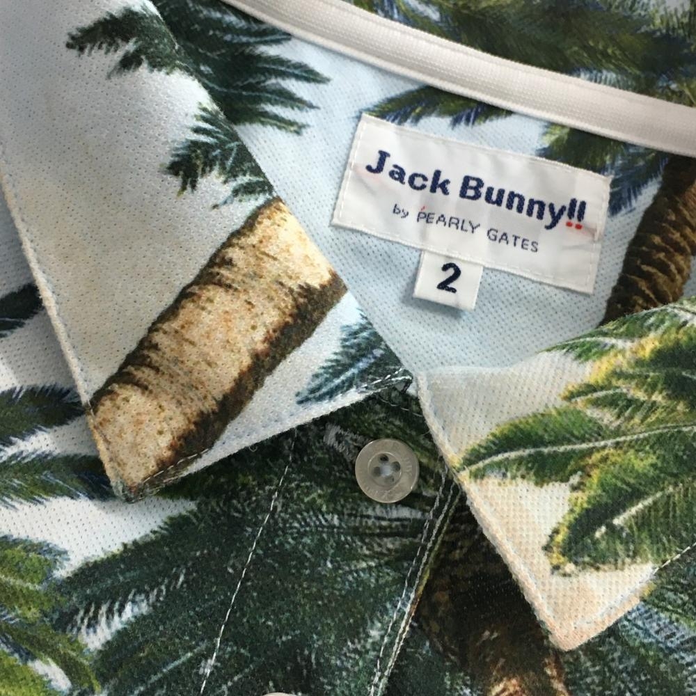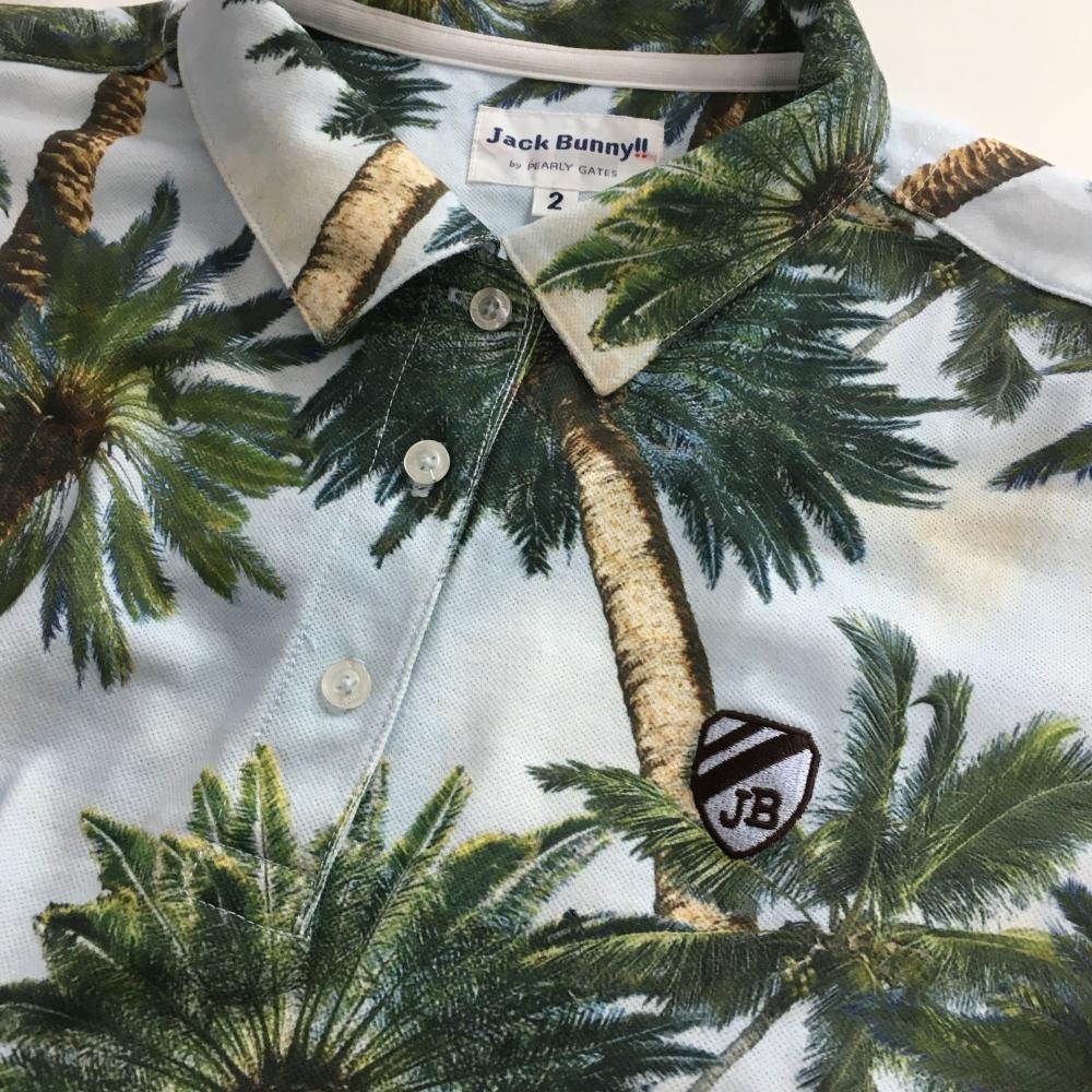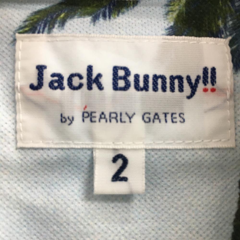ジャックバニー 半袖ポロシャツ ライトブルー×グリーン ヤシの木柄 胸刺しゅう レディース 2(L) ゴルフウェア Jack Bunny