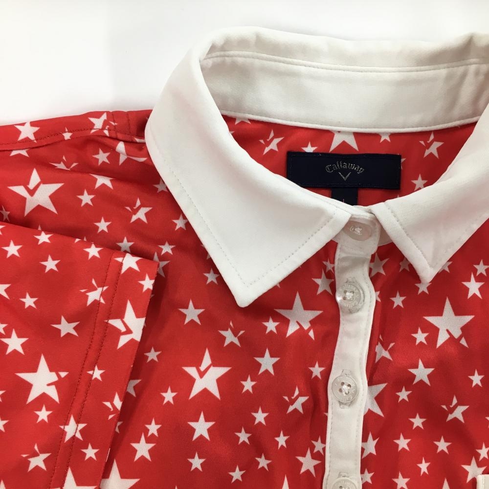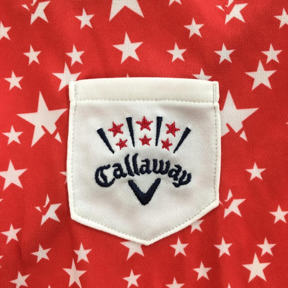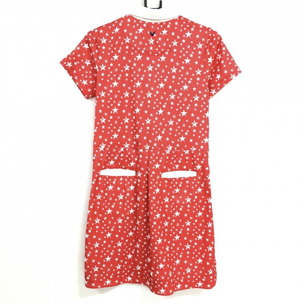 【超美品】キャロウェイ ワンピース オレンジ×白 星柄胸ポケット・刺しゅう レディース L ゴルフウェア Callaway