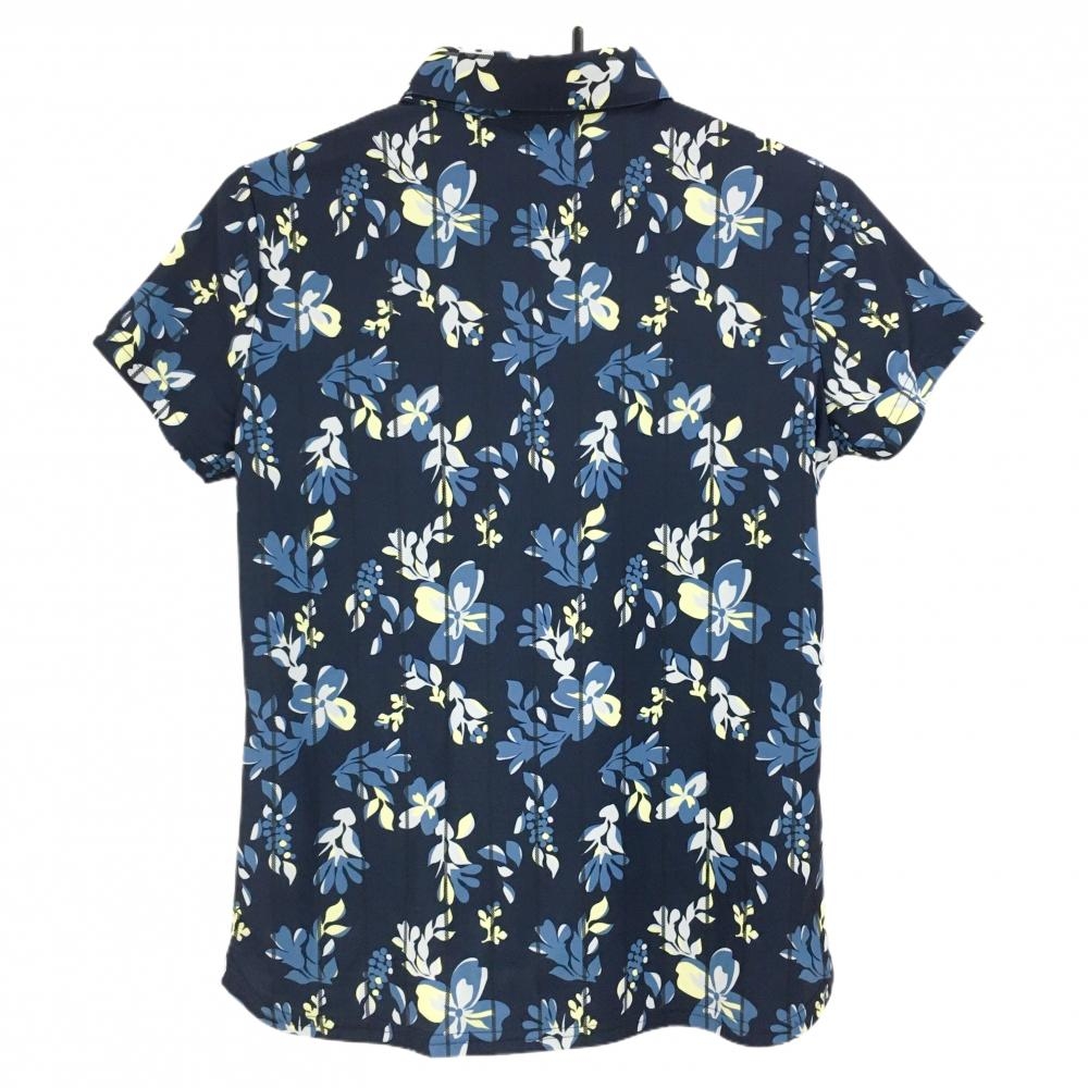 【超美品】キャロウェイ 半袖ポロシャツ ネイビー×イエロー 花柄 ストライプ レディース M ゴルフウェア 2023年モデル Callaway