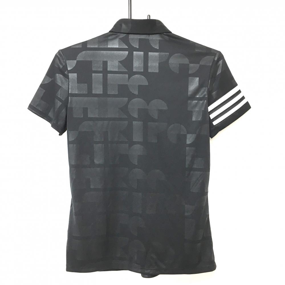 【超美品】アディダス 半袖ポロシャツ 黒×白 地模様 袖3ラインメッシュ レディース M ゴルフウェア adidas