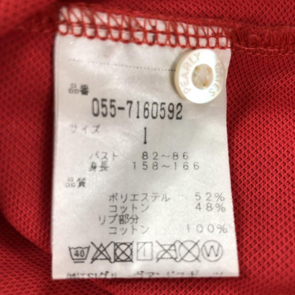パーリーゲイツ 半袖ポロシャツ レッド×ネイビー 襟裏プリント フェルトワッペン レディース 1(M) ゴルフウェア PEARLY GATES
