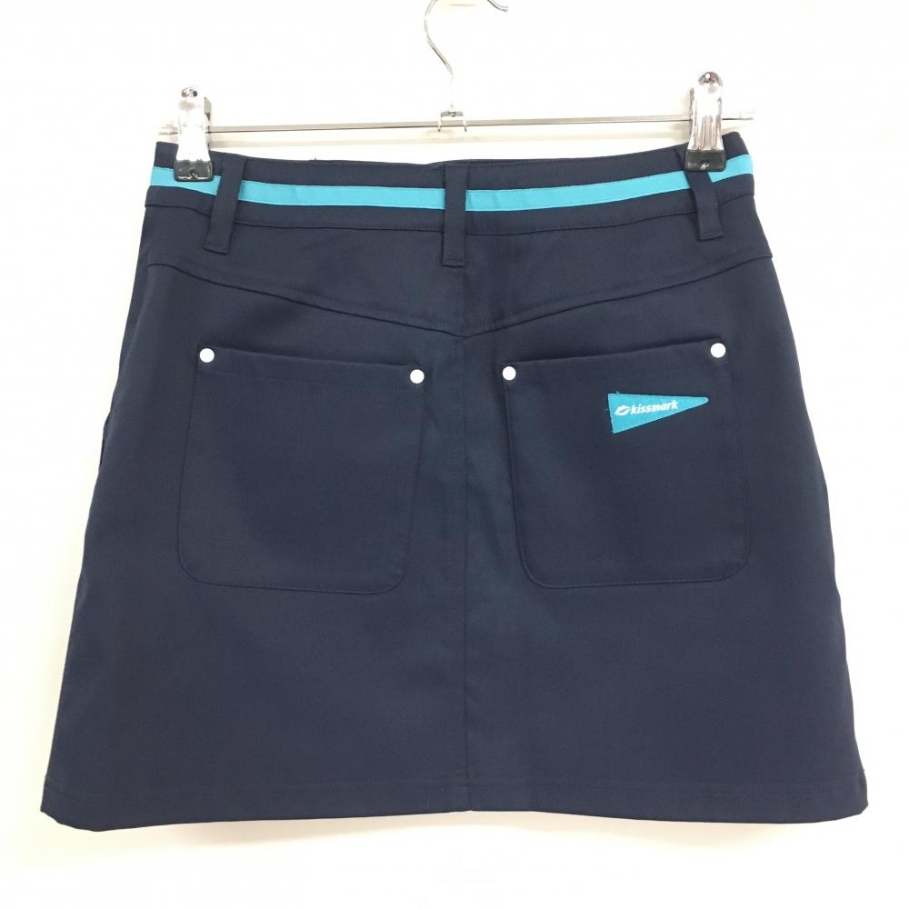 【超美品】キスマーク スカート ネイビー×ライトブルー ベルト部ライン レディース 7 ゴルフウェア kissmark