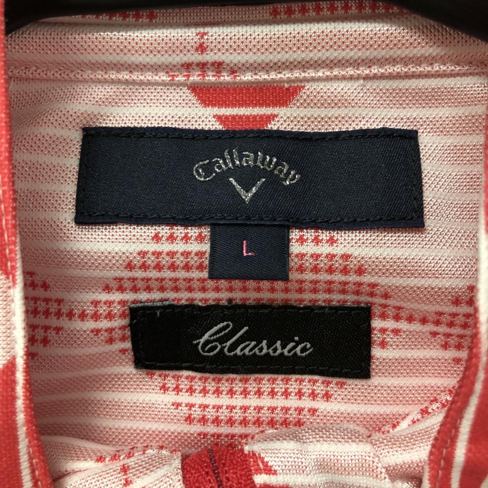 【超美品】キャロウェイ 半袖ハイネックシャツ ピンク×白 ブロックチェック調 ボーダー ハーフジップ レディース L ゴルフウェア Callaway