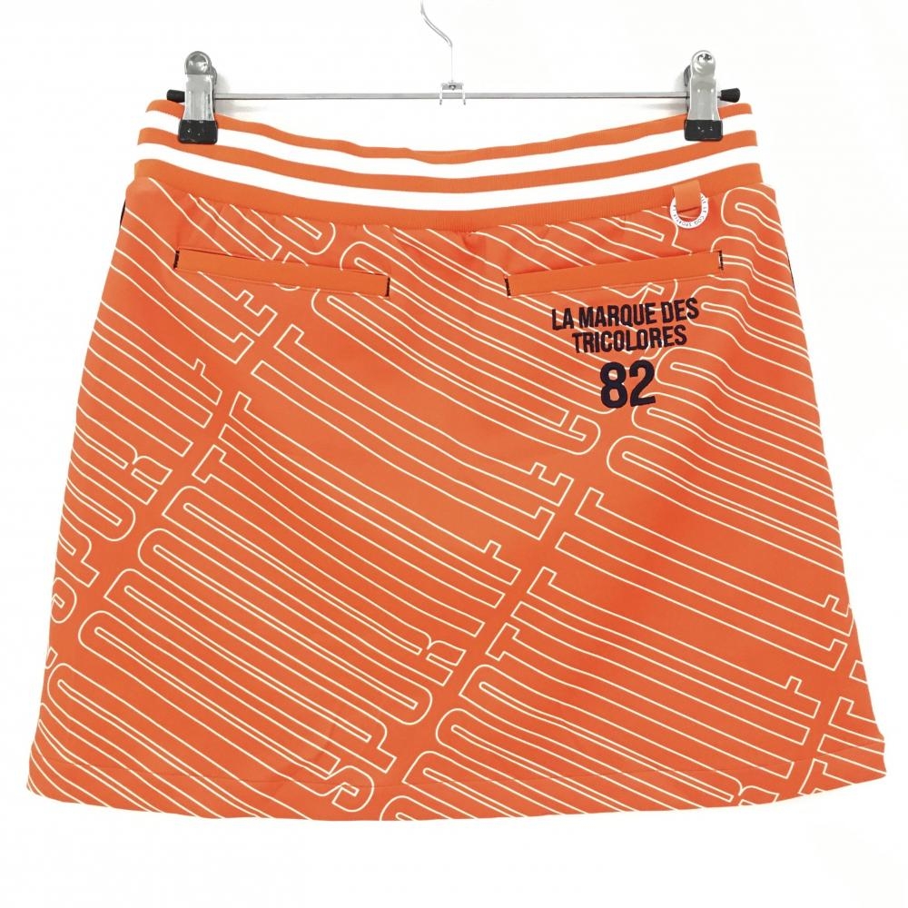 【超美品】ルコック ストレッチスカート オレンジ×白 総柄 ウエストゴム レディース 11 ゴルフウェア 2022年モデル le coq sportif