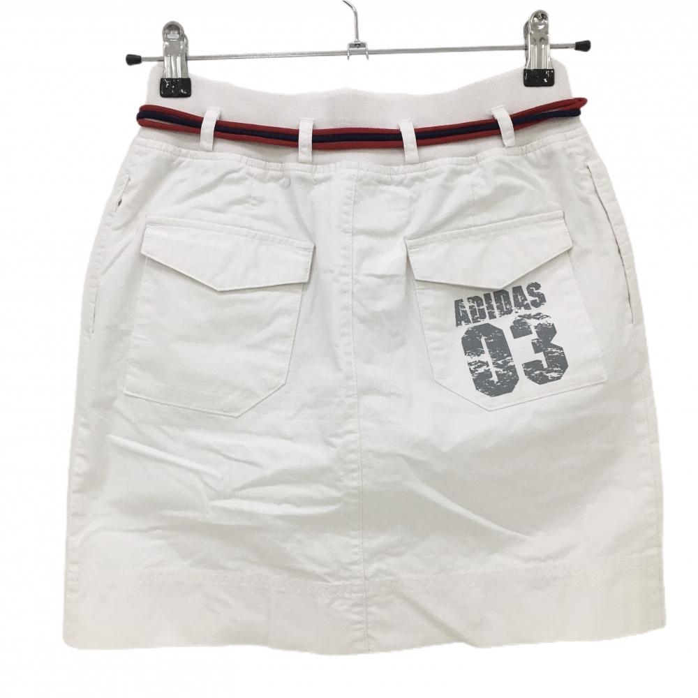 アディダス スカート 白 格子織生地 フロントボタン 紐ベルト付き レディース S ゴルフウェア adidas