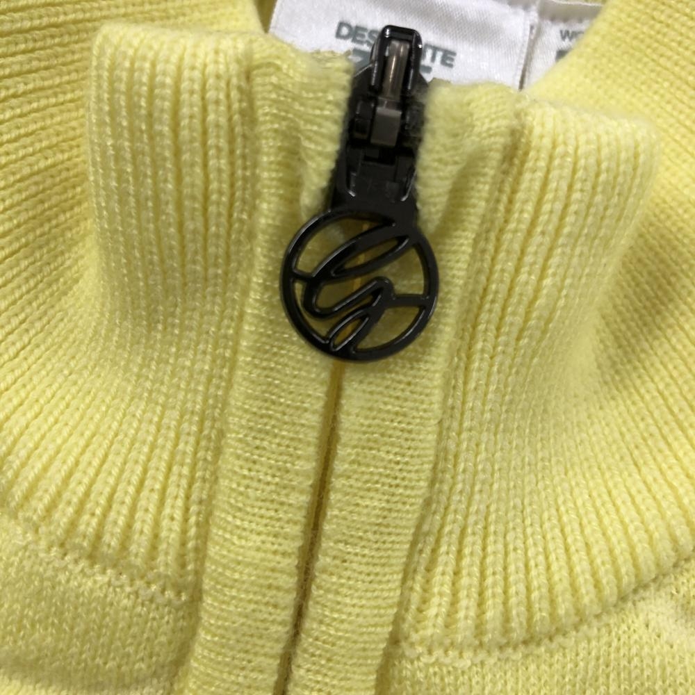 【超美品】デサントゴルフ ニットジャケット イエロー 前身頃総柄 中田英寿 レディース M ゴルフウェア DESCENTE