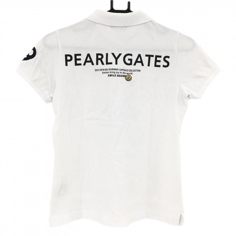 パーリーゲイツ 半袖ポロシャツ 白 ニコちゃん スマイル バックロゴ レディース 0(S) ゴルフウェア PEARLY GATES